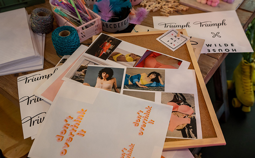 Μέσα από τη δημιουργία προσωπικών mood-boards από υφάσματα σε χρώματα εμπνευσμένα από την ανανεωμένη σειρά Flex Smart της Triumph, οι attendees συνδύασαν φωτογραφίες και inspirational φράσεις εκφράζοντας έτσι τα συναισθήματά τους τη συγκεκριμένη στιγμή. Στη συνέχεια, είχαν την ευκαιρία να δουν από κοντά την ανανεωμένη σειρά Flex Smart της Triumph και να τη συνδυάσουν με υπέροχα outfits, δημιουργώντας το δικό τους μοναδικό και προσωπικό look.