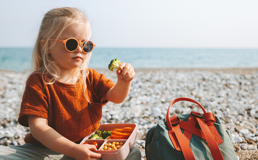 Η ενυδάτωση και η καλή διατροφή των παιδιών σας κατά τη διάρκεια των καλοκαιρινών εξορμήσεων είναι απαραίτητη. Έχετε πάντα μαζί σας δροσερό νερό για να διασφαλίσετε ότι όλοι θα παραμείνουν ενυδατωμένοι, ειδικά όταν έχει πολλή ζέστη. Προτιμήστε ισοθερμικά μπουκάλια για να διατηρείται το νερό δροσερό για μεγαλύτερο χρονικό διάστημα. Επιπλέον, πάρτε μαζί σας υγιεινά και δροσερά σνακ, όπως κομμένα φρούτα και μπάρες δημητριακών – προσοχή ώστε να μη λιώνουν εύκολα.