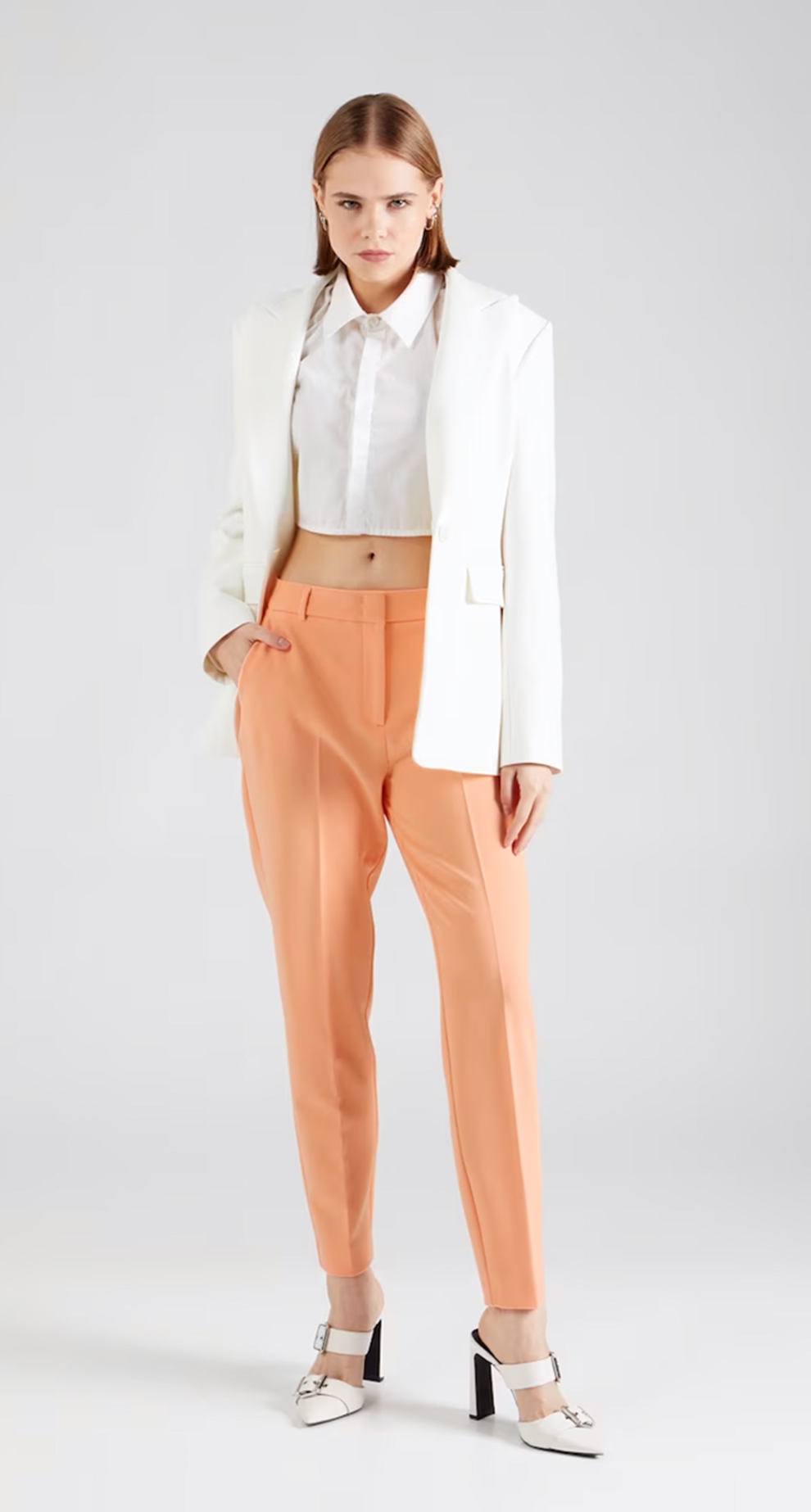 Αν έχετε σωματότυπο «μήλο», τότε πρέπει να αναδείξετε τα πόδια σας. Και δεν υπάρχει καλύτερος τρόπος να το πετύχετε αυτό, από το να διαλέξετε χρωματιστά παντελόνια. Φέτος κάντε τη διαφορά και φορέστε ροδακινί παντελόνι, ενώ στα υπόλοιπα κομμάτια του look επιλέξτε κάποιο neutral χρώμα, όπως μαύρο ή λευκό.