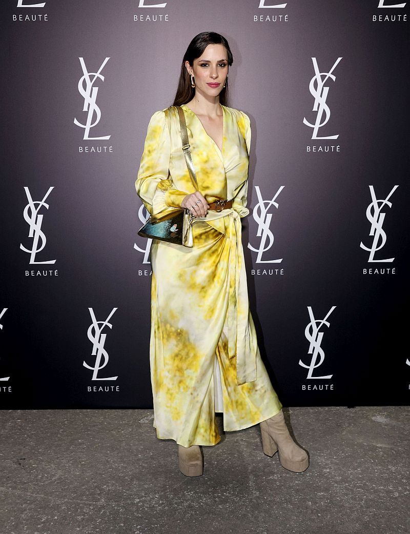Η Ιζαμπέλα Φούλοπ επέλεξε ένα wrap φόρεμα σε κίτρινη απόχρωση και tie-dye μοτίβο, το οποίο συνδύασε με μπεζ μπότες με χοντρό τακούνι και τσάντα σε μεταλιζέ απόχρωση, ενώ ολοκλήρωσε το σύνολο με μια λεπτή καφέ δερμάτινη ζώνη και χρυσά σκουλαρίκια.