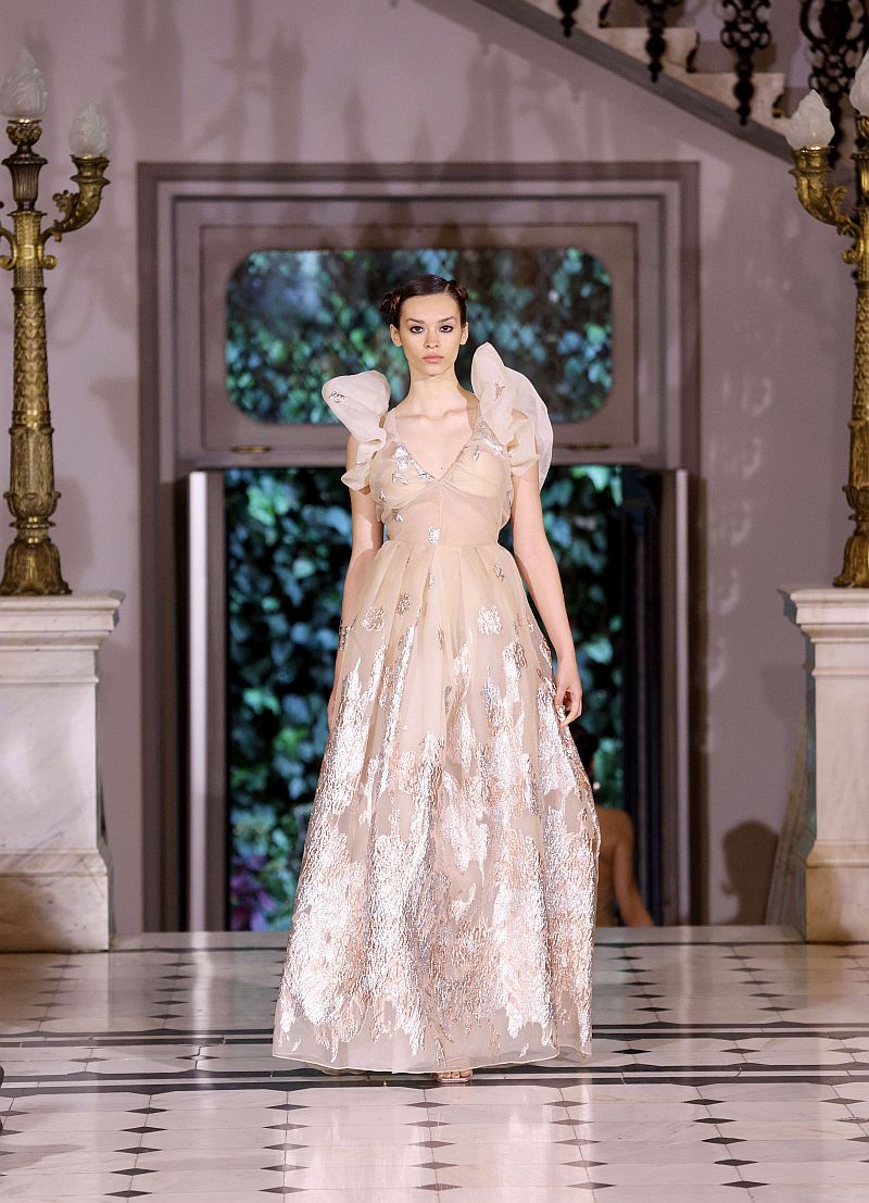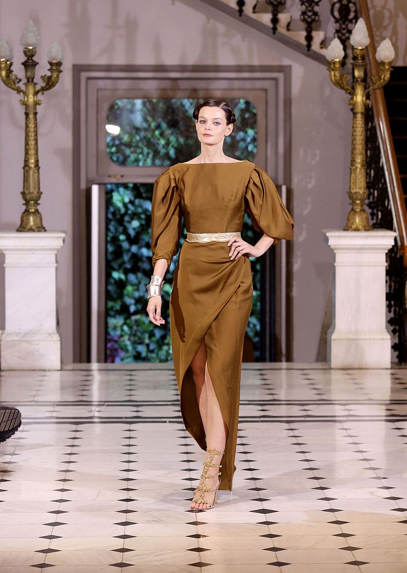 Η συλλογή «L’Olympien Art Couture» είναι αφιερωμένη στο ολυμπιακό πνεύμα και στην κομψότητα της Αρχαίας Ελλάδας, εμπνευσμένη από τα αγάλματα και τις ασπίδες των πολεμιστών της.