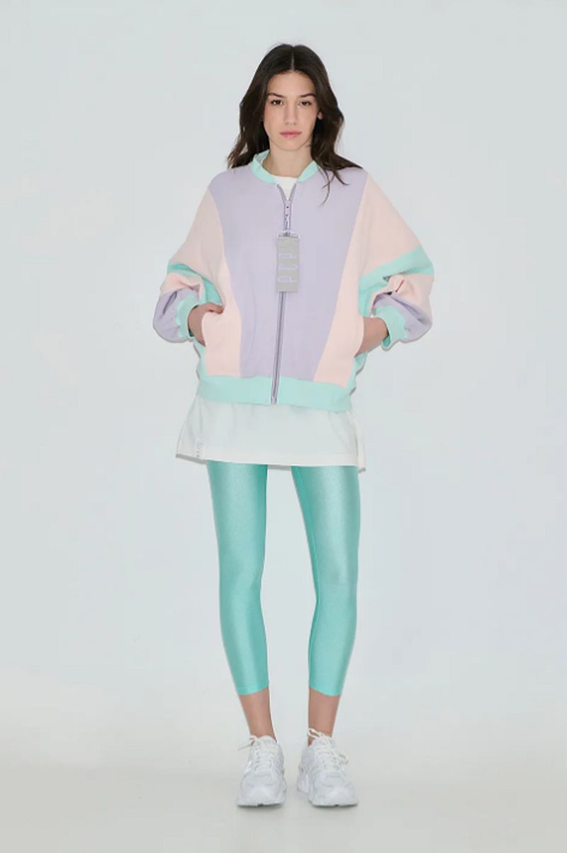 Η σύζυγος του Κώστα Φορτούνη φόρεσε ένα ντένιμ μπλε παντελόνι, λευκό τοπ, αθλητικά παπούτσια και μία oversize ζακέτα με έναν ενδιαφέροντα συνδυασμό χρωμάτων: Δύο διαφορετικά παστέλ χρώματα, το ροζ και το βεραμάν, λίγο πράσινο και λευκό. Ολοκλήρωσε το look της με ένα ζευγάρι γυαλιά ηλίου και ένα πολύχρωμο backpack.