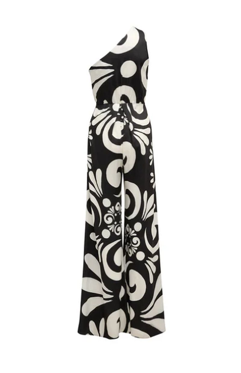 Αυτή τη φορά η Μαρία Ναυπλιώτου επέλεξε μια ολόσωμη φόρμα με έναν ώμο και το χαρακτηριστικό μοτίβο του brand, την Charis One Shoulder Jumpsuit, η οποία κοστίζει 720 ευρώ στο επίσημο site και ολοκλήρωσε το look της με μια τσάντα φάκελο στο χρώμα της άμμου και παπούτσια πλατφόρμες.