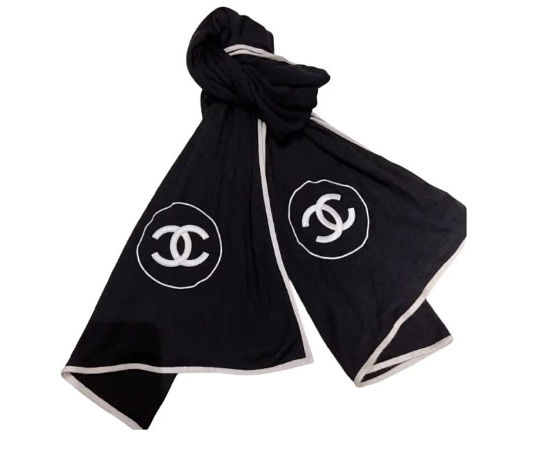 Πρόκειται για ένα ασπρόμαυρο φουλάρι από ύφασμα κασμίρι με την υπογραφή του οίκου Chanel παλαιότερης συλλογής, το οποίο ωστόσο υπάρχει μεταχειρισμένο σε πολύ καλή κατάσταση στο Vestiaire Collective και κοστίζει 770 ευρώ.
