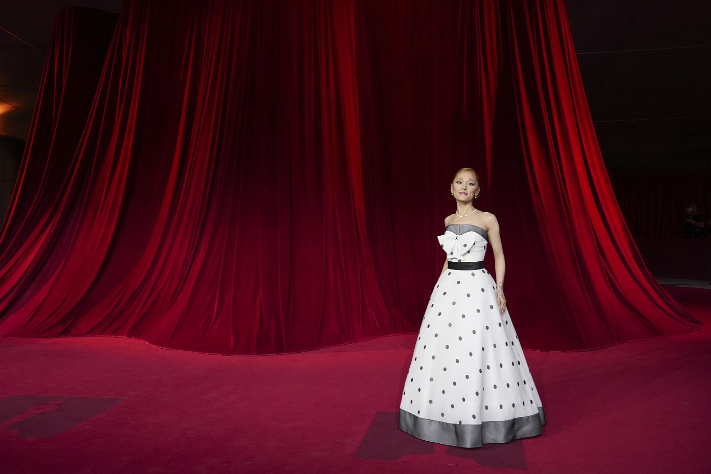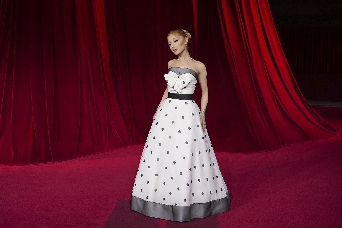 Η Ariana Grande έπιασε τα μαλλιά της σε ένα κομψό περίτεχνο σινιόν, τόνισε τη γραμμή του μαύρου eyeliner στα μάτια και το υπόλοιπο make up της κινήθηκε σε αποχρώσεις του ροζ-μωβ ενώ επέλεξε ένα γαλλικό μανικιούρ.