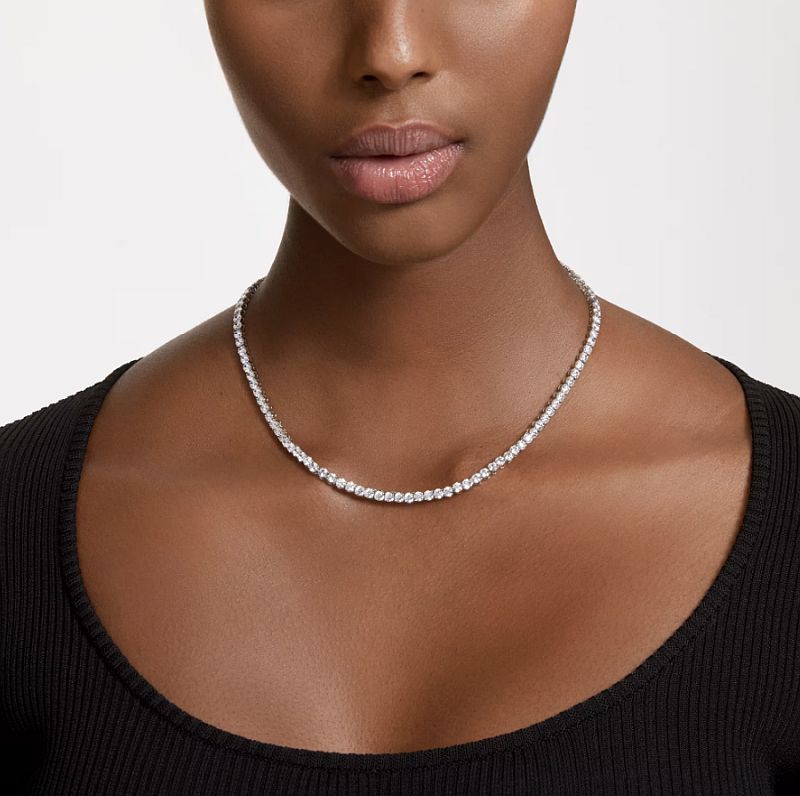 Εμείς σταθήκαμε στο απλό αλλά διαχρονικό περιδέραιο σε κλασικό στιλ που μπορεί να φορεθεί από γυναίκες κάθε ηλικίας και να συμπληρώσει μια εμφάνιση προσθέτοντας αίγλη και κομψότητα. Λιτό, με καθαρή γραμμή, στέκεται στο σωστό σημείο κολακεύοντας το λαιμό και τις κλείδες γεμάτο λάμψη. Είναι ένα περιδέραιο που αποτελεί βασικό κομμάτι της μπιζουτιέρας καθώς φοριέται είτε μόνο του, είτε αποτελεί τη βάση για να συνδυάσετε το υπόλοιπο σετ των κοσμημάτων σας ή το layering των κολιέ σας. Αν δεν έχετε βρει ακόμη το τέλειο κυρίως κόσμημα για το λαιμό, θέτει σοβαρή υποψηφιότητα.