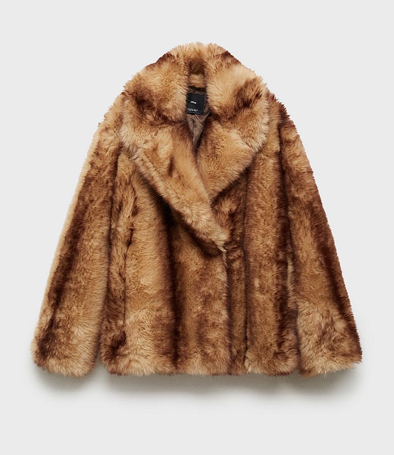 Πρόκειται λοιπόν για μία γούνα σε γλυκό καφέ χρώμα με μεσαίο μήκος που φθάνει ανάλογα με το ύψος σας μέχρι κάτω από τους γλουτούς και μπροστά κλείνει με μια κρυφή κόπιτσα. Διαθέτει φόδρα από σατινέ ύφασμα και δυο εξωτερικές τσέπες και είναι διαθέσιμη από το online shop του Mango.