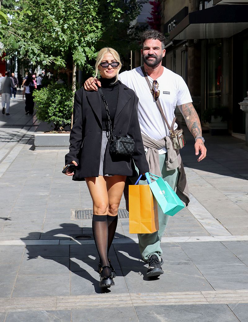 Η Ιωάννα Τούνη απαθανατίστηκε να περπατάει μαζί με το σύντροφό της Δημήτρη Αλεξάνδρου στο κέντρο της Αθήνας κρατώντας σακούλες από το κατάστημα του οίκου Louis Vuitton με εμάς να στεκόμαστε στον τρόπο που φόρεσε τις διάφανες κάλτσες της.