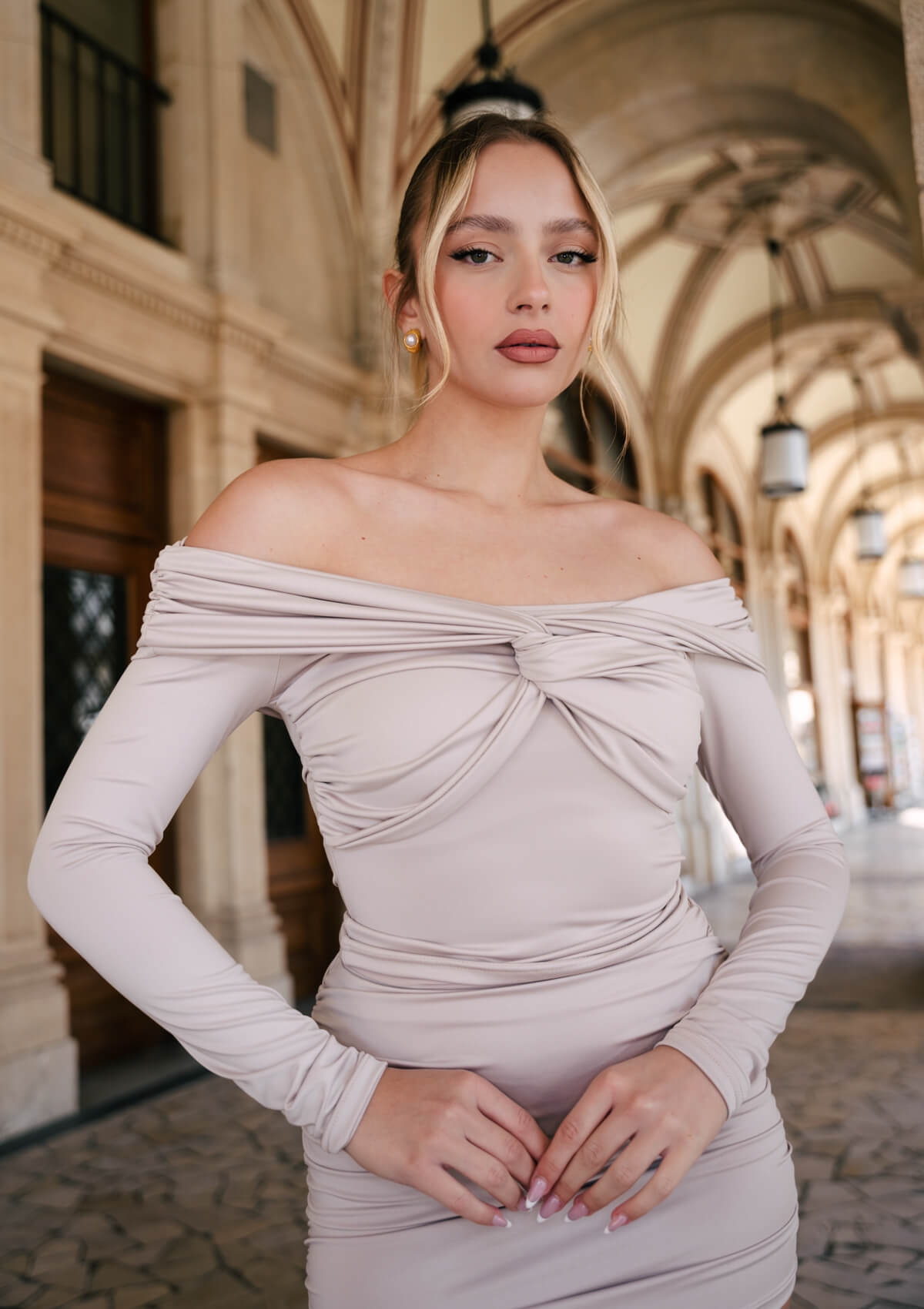 Η influencer και επιχειρηματίας επέλεξε για την εμφάνισή της ένα φόρεμα και μία καμπαρντίνα από το δικό της brand Bubblegun και ολοκλήρωσε το look με μία μπορντό τσάντα Lady Dior και γόβες Gucci.