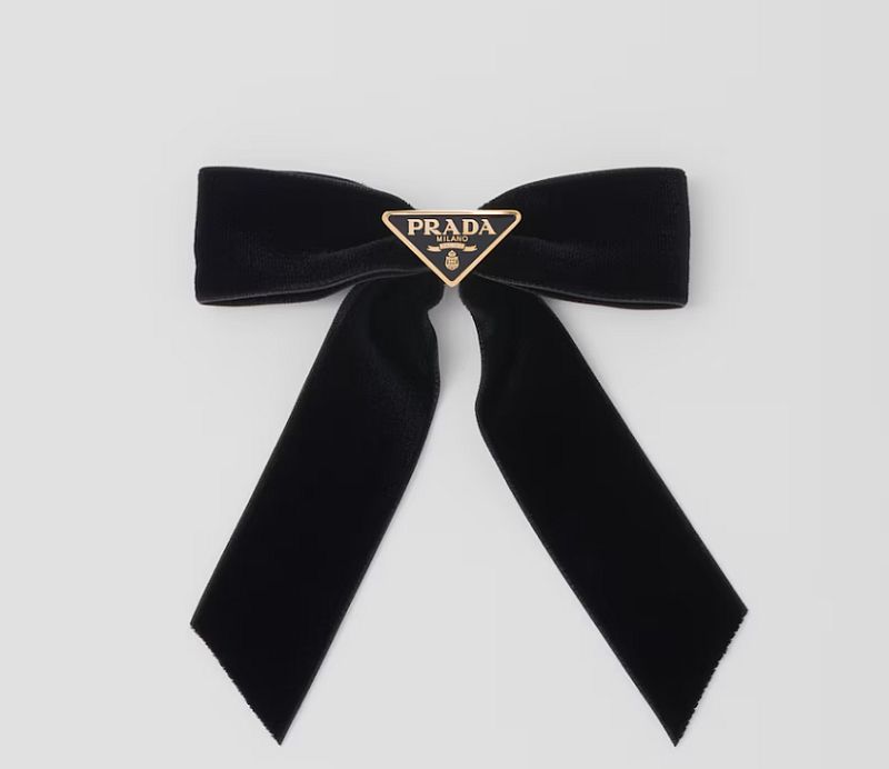 Η παρουσιάστρια της εκπομπής «Super Κατερίνα» επέλεξε για να στολίσει το χτένισμά της ένα μαύρο βελούδινο φιόγκο με την υπογραφή του οίκου Prada ο οποίος στο επίσημο site κοστίζει 490 ευρώ.