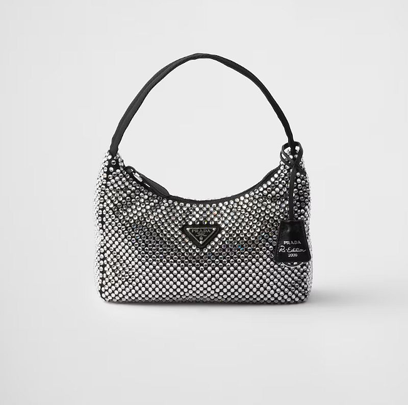 Η τσάντα της Αλεξάνδρας Παναγιώταρου είναι η Prada Re-Edition Satin mini-bag with crystals που κοστίζει 1.900€ . Πρόκειται για μία mini hobo τσάντα σε πολυτελή σατέν εκδοχή, η οποία είναι στολισμένη με κρυστάλλους και διακοσμημένη με το εμβληματικό τρίγωνο λογότυπο του οίκου.