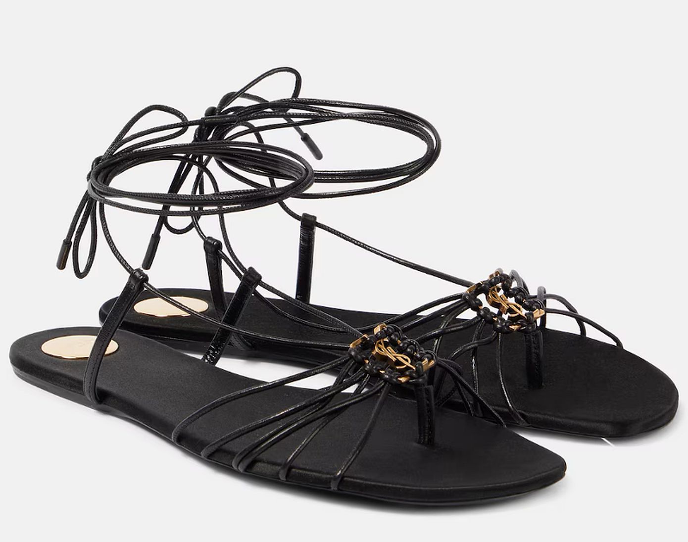 Tα φλατ σανδάλια με κορδόνια είναι τα παπούτσια που πρωταγωνιστούν αυτή τη σεζόν, καθώς είναι άνετα λόγω του χαμηλού ύψους και άκρως εντυπωσιακά χάρη στα μακριά περίπλοκα κορδόνια τους.