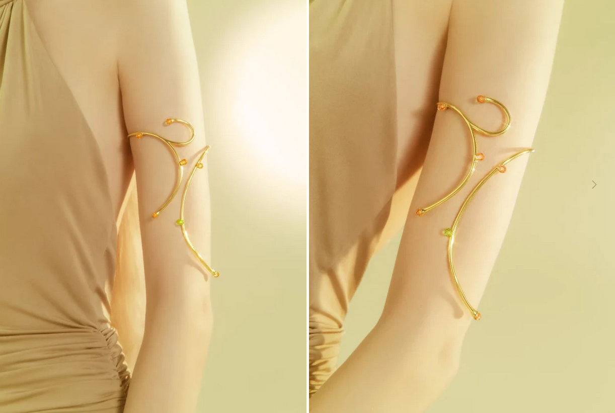 Το βραχιόλι που φοριέται στο μπράτσο αποτελούσε από την αρχαιότητα ένα δημοφιλές κόσμημα που συμβόλιζε τον πλούτο, την κοινωνική θέση, τη θεϊκή προστασία, ακόμη και τη γενναιότητα σε όσους πολιτισμούς αγαπήθηκε. Το arm bracelet είναι ένα κόσμημα με χιλιάδες συμβολισμούς και έκτοτε αναβίωσε πολλές φορές με τη σύγχρονη μόδα να το θέτει ξανά στο επίκεντρο τη δεκαετία του 1970. Τότε ήταν που τα bohemian κορίτσια το φόρεσαν ψηλά στο χέρι τους και το επανερμήνευσαν. Το είδαμε ξανά στα ’90s, ενώ από τότε πέρασαν τριάντα χρόνια και η τάση μπήκε στον πάγο.
