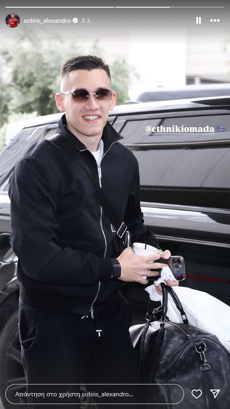 Ο Σωτήρης Αλεξανδρόπουλος, που πλέον αγωνίζεται στη Σταντάρ Λιέγης, έφτασε χθες στο ξενοδοχείο που διαμένει η Εθνική Ομάδα Ποδοσφαίρου για να συμμετάσχει στον αγώνα απέναντι στη Σκωτία στο στάδιο Γ.Καραϊσκάκης, φορώντας ένα ζευγάρι γυαλιά ηλίου με την υπογραφή του Αμερικανού σχεδιαστή John Dalia και ένα σακίδιο που έφερε τη σφραγίδα του γαλλικού οίκου Louis Vuitton.