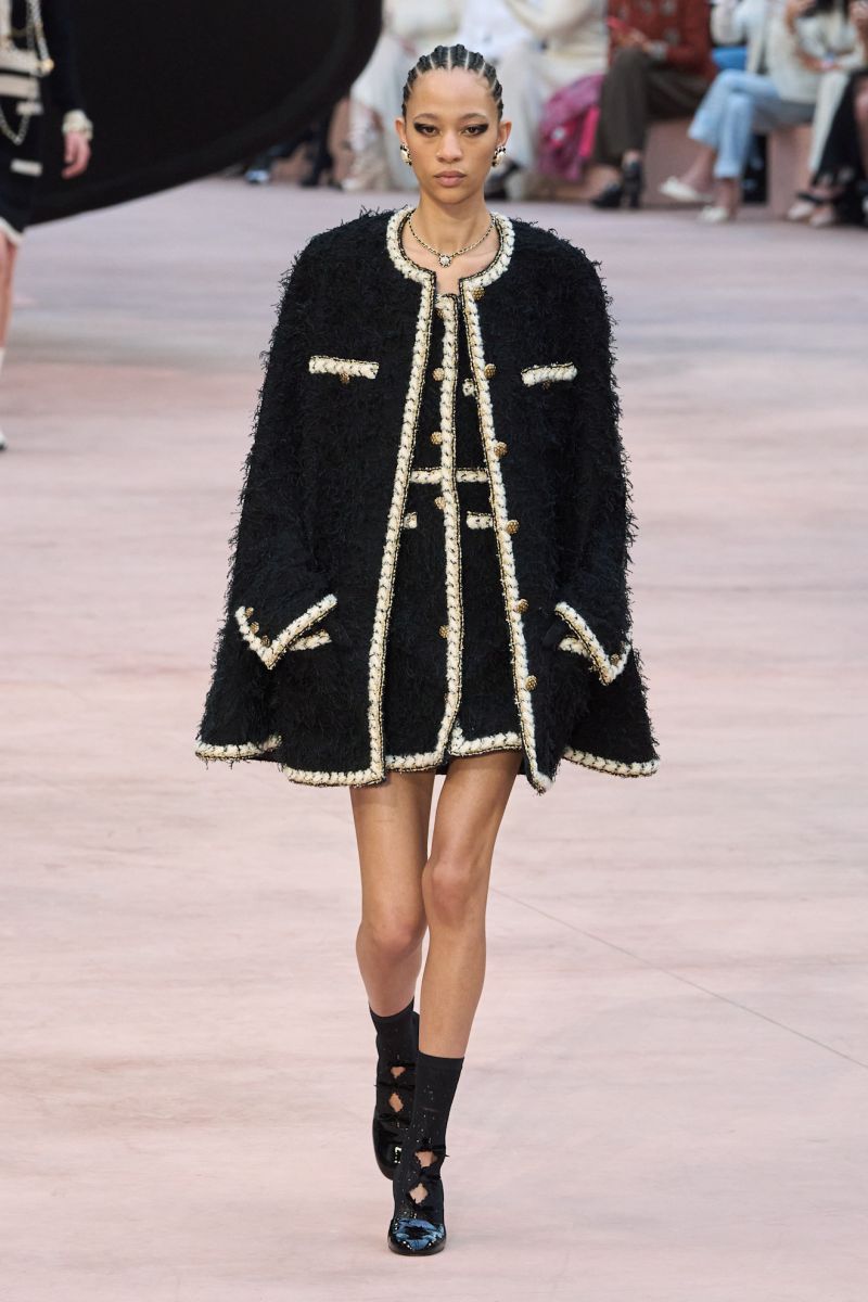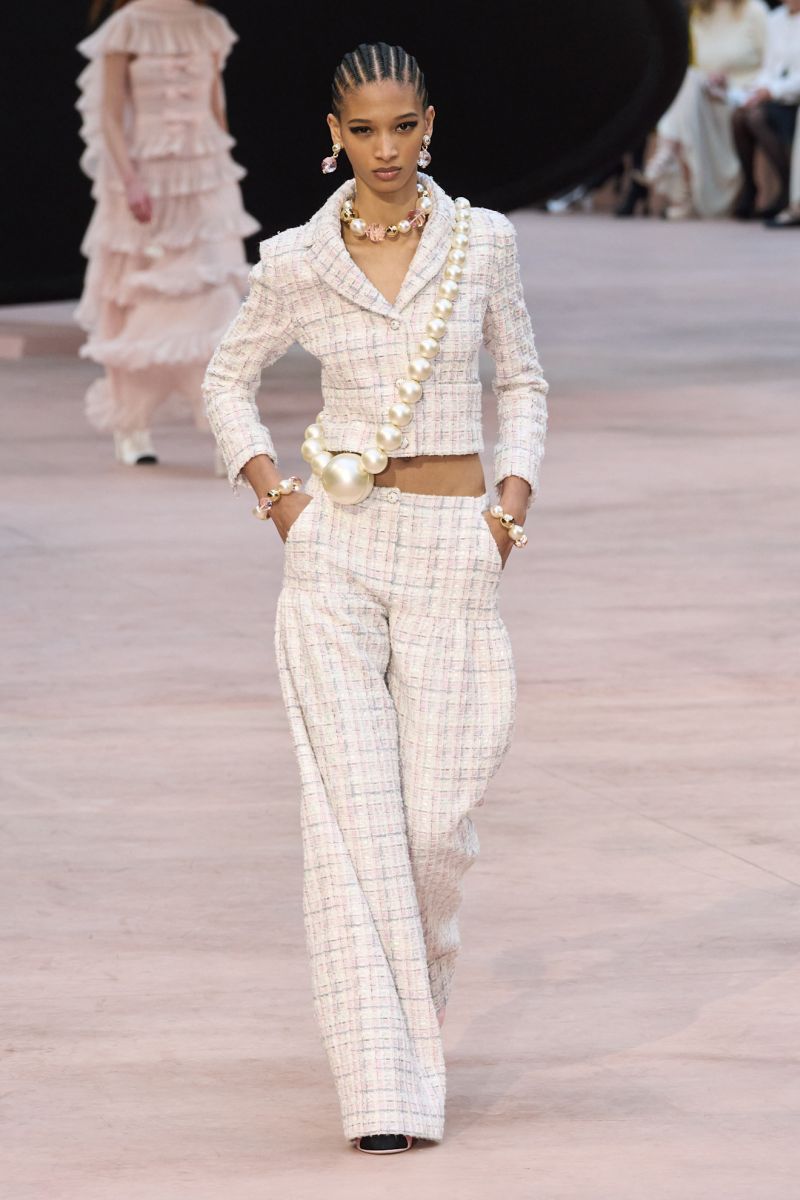 Η Γαλλίδα σχεδιάστρια θεωρούσε πως το σώμα αναδεικνύεται μέσα από τις σωστές αναλογίες. Η πολυπόθητη τέλεια ισορροπία επιτυγχάνεται μέσα από τον συνδυασμό διαφορετικών υφών και όγκων που ως στόχο έχουν να τονίσουν τη γυναικεία σιλουέτα. Βασικό στοιχείο των looks της Coco Chanel ήταν η μίξη των αέρινων και των σταθερών υφασμάτων, κάτι το οποίο συνέχισε ο Karl Lagerfeld. Στη συλλογή για το Φθινόπωρο-Χειμώνας 2025/2026 είδαμε αυτό το πάντρεμα των διαφορετικών υφών στον αρμονικό συνδυασμό του διαχρονικού tweed με αέρινες διαφάνειες.