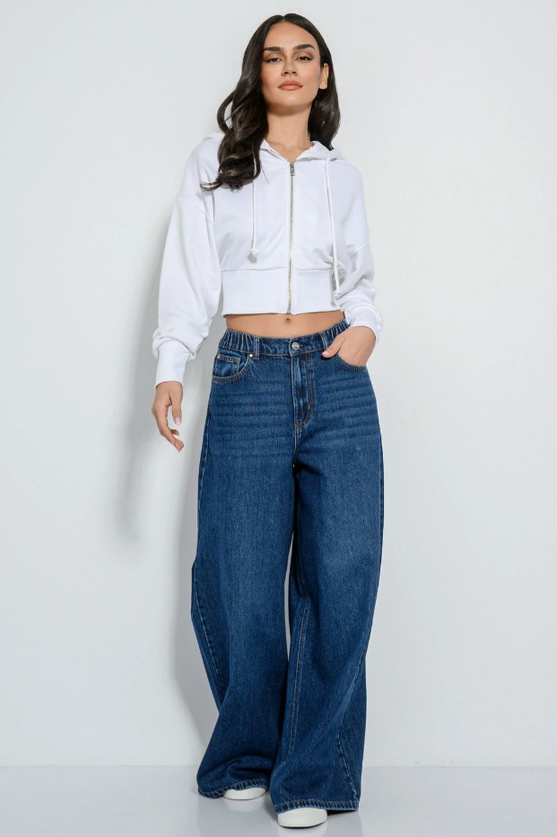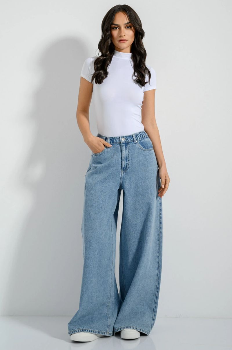Έτσι λοιπόν καταλήξαμε πως αυτό με την καλύτερη σχέση ποιότητας τιμής είναι ένα wide leg ψηλόμεσο denim παντελόνι με λάστιχο στη μέση, θηλιές για ζώνη, τσέπες μπροστά και πίσω, και κλείσιμο με φερμουάρ και κουμπί μπροστά, από τη νέα συλλογή του brand Pink Woman. Κοστίζει 29,99 ευρώ και βγαίνει σε δυο αποχρώσεις. Η dark blue εκδοχή του είναι κατάλληλη για πιο preppy looks, ενώ η medium blue απόχρωση για πιο grunge.
