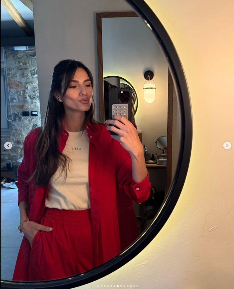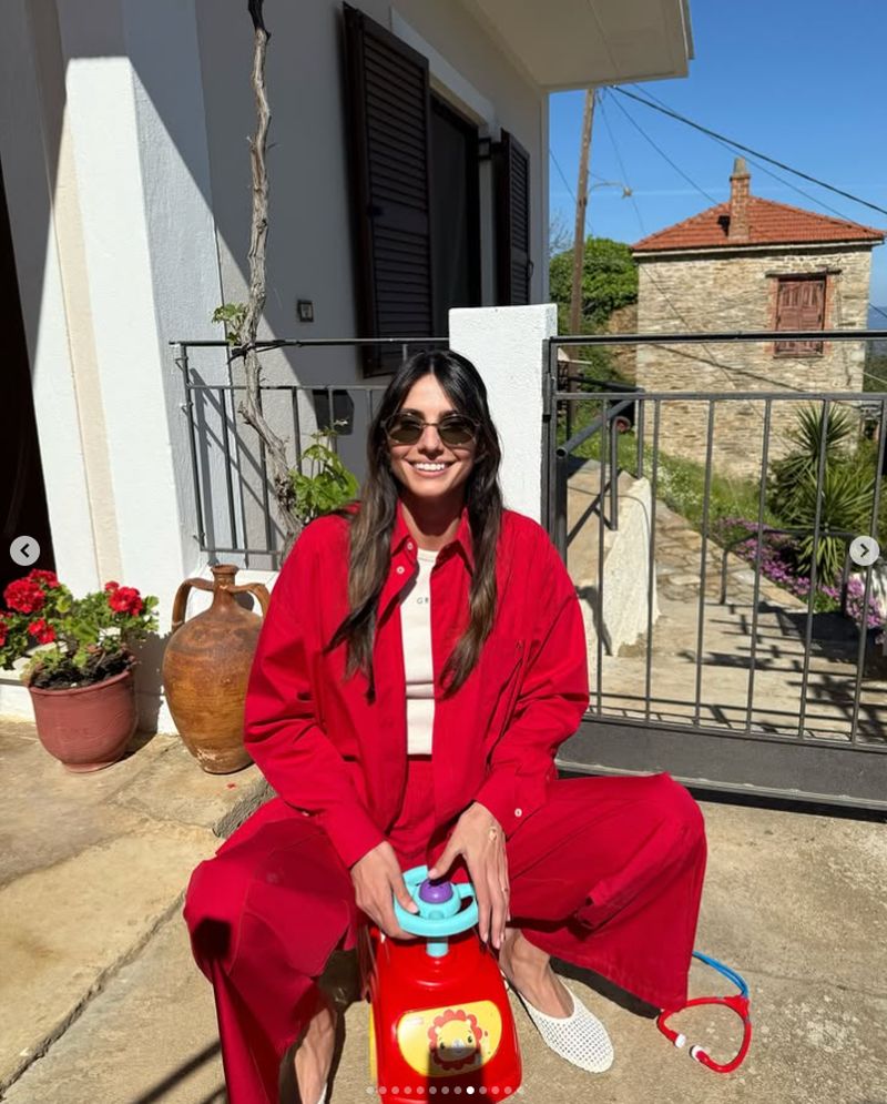 Η Ηλιάνα Παπαγεωργίου επέλεξε ένα κόκκινο πουκάμισο, μία κόκκινη ψηλόμεση παντελόνα και ένα λευκό T Shirt από το δικό της brand GRÉS, ενώ ολοκλήρωσε το look της με ένα ζευγάρι πλεκτά λευκά mules με kitten heels τα οποία ανήκουν στη νέα συλλογή της Zara για την Άνοιξη του 2025. Τα πλεκτά παπούτσια είναι μεγάλη τάση αυτή τη σεζόν και μπορείτε να τα επιλέξετε τόσο στη flat όσο και στην πιο ψηλή εκδοχή τους- όπως τα άνετα kitten heels για όσες δεν θέλουν να αποχωριστούν τα τακούνια.