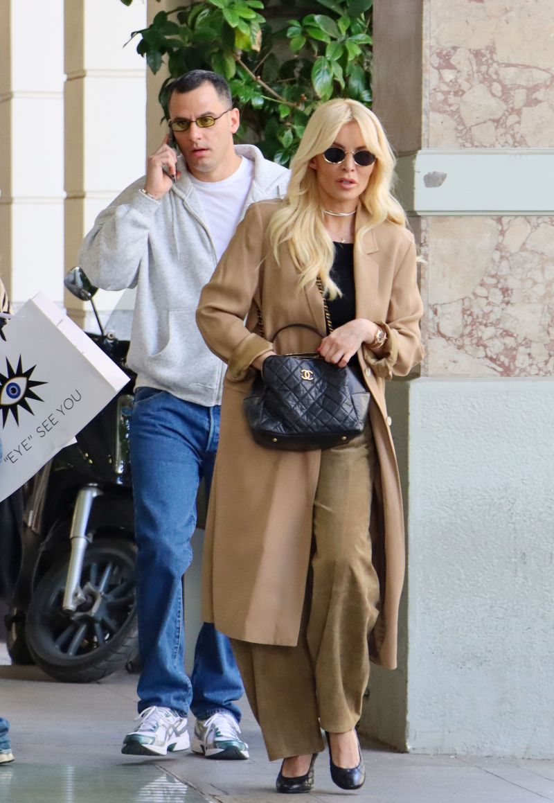 Ο φωτογραφικός φακός εντόπισε την παρουσιάστρια της εκπομπής «Super Κατερίνα» να περπατάει στο κέντρο της πόλης μαζί με το σύντροφό της, φορώντας ένα παντελόνι σε ταμπά απόχρωση μακρύ μπεζ-καμηλό πανωφόρι, μαύρο τοπ, μαύρες γόβες και μαύρη τσάντα με την υπογραφή του οίκου Chanel. Το look της είναι κομψό, ανεπιτήδευτα chic και διαχρονικό. Το συνολικό ύφος είναι quiet luxury που σημαίνει ήσυχη πολυτέλεια -δηλαδή δίνει την αίσθηση πλούτου και γούστου χωρίς υπερβολές.