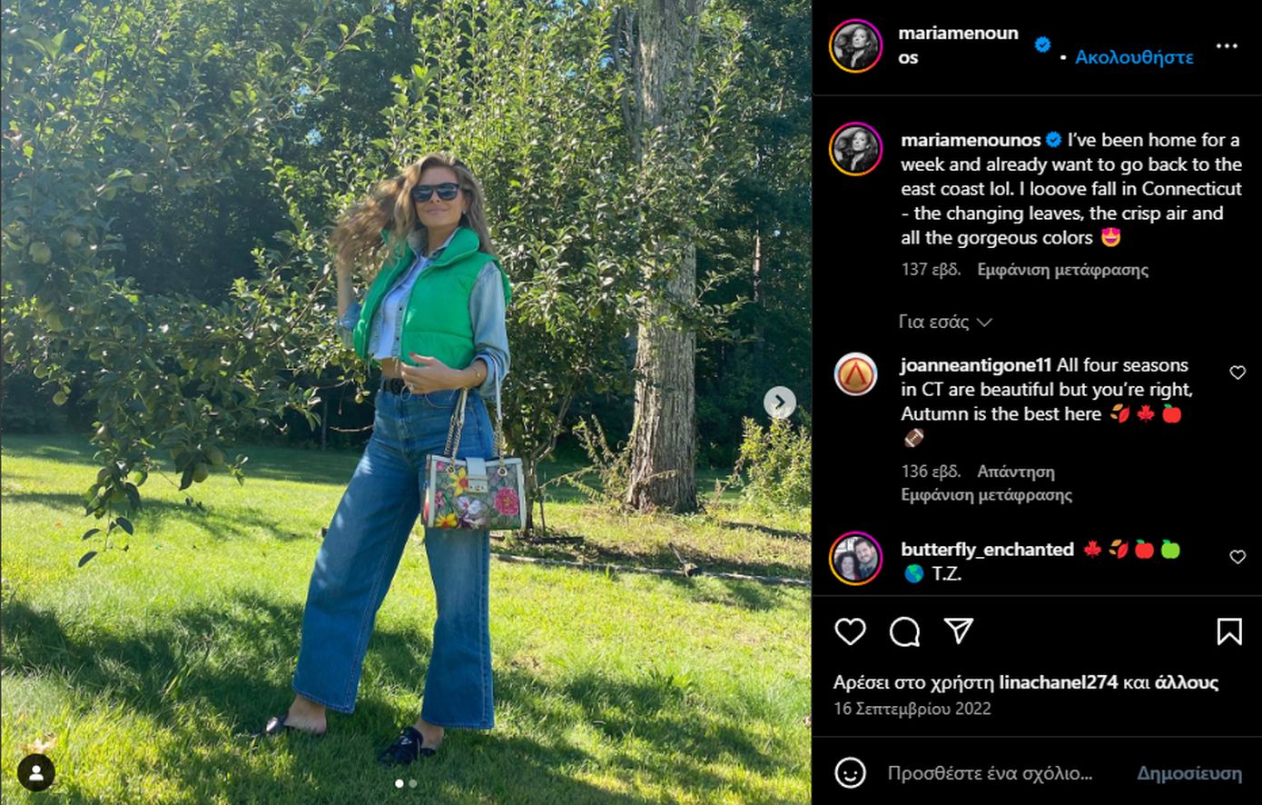 H Mαρία Μενούνος επέλεξε μία Gucci τσάντα με floral μοτίβο και φυσικά το χαρακτηριστικό καμβά του οίκου παλαιότερης κολεξιόν, με την οποία την έχουμε δει να ποζάρει και πριν από τρία περίπου χρόνια σε δυο φωτογραφίες που ανέβασε στον προσωπικό της λογαριασμό στο Instagram πράγμα που αποδεικνύει πως τα πολυτελή αξεσουάρ είναι διαχρονικά και μπορούν να ανακυκλωθούν με τις εμφανίσεις μας μέσα στα χρόνια καθώς δε χάνουν την αξία τους ενώ ταυτόχρονα βοηθάμε και στη βιωσιμότητα της μόδας, ένα πολύ βασικό ζητούμενο που απασχολεί τη συγκεκριμένη βιομηχανία.