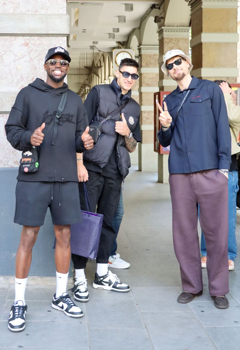 Ο Τζέριαν Γκραντ επέλεξε μαύρο hoodie, μαύρη βερμούδα, μαύρο καπέλο jockey και ασπρόμαυρα sneakers. O Παναγιώτης Καλαϊτζάκης μαύρο T-shirt, μαύρη φόρμα, μαύρο puffer γιλέκο και επίσης ασπρόμαυρα sneakers. Ο Χουάντσο Ερνανγκόμεθ επέλεξε μπλε πουκάμισο, παντελόνι σε ανοιχτό μπορντό χρώμα, καφέ παπούτσια και ένα λευκό bucket hat το οποίο κέρδισε την καρδιά μας.