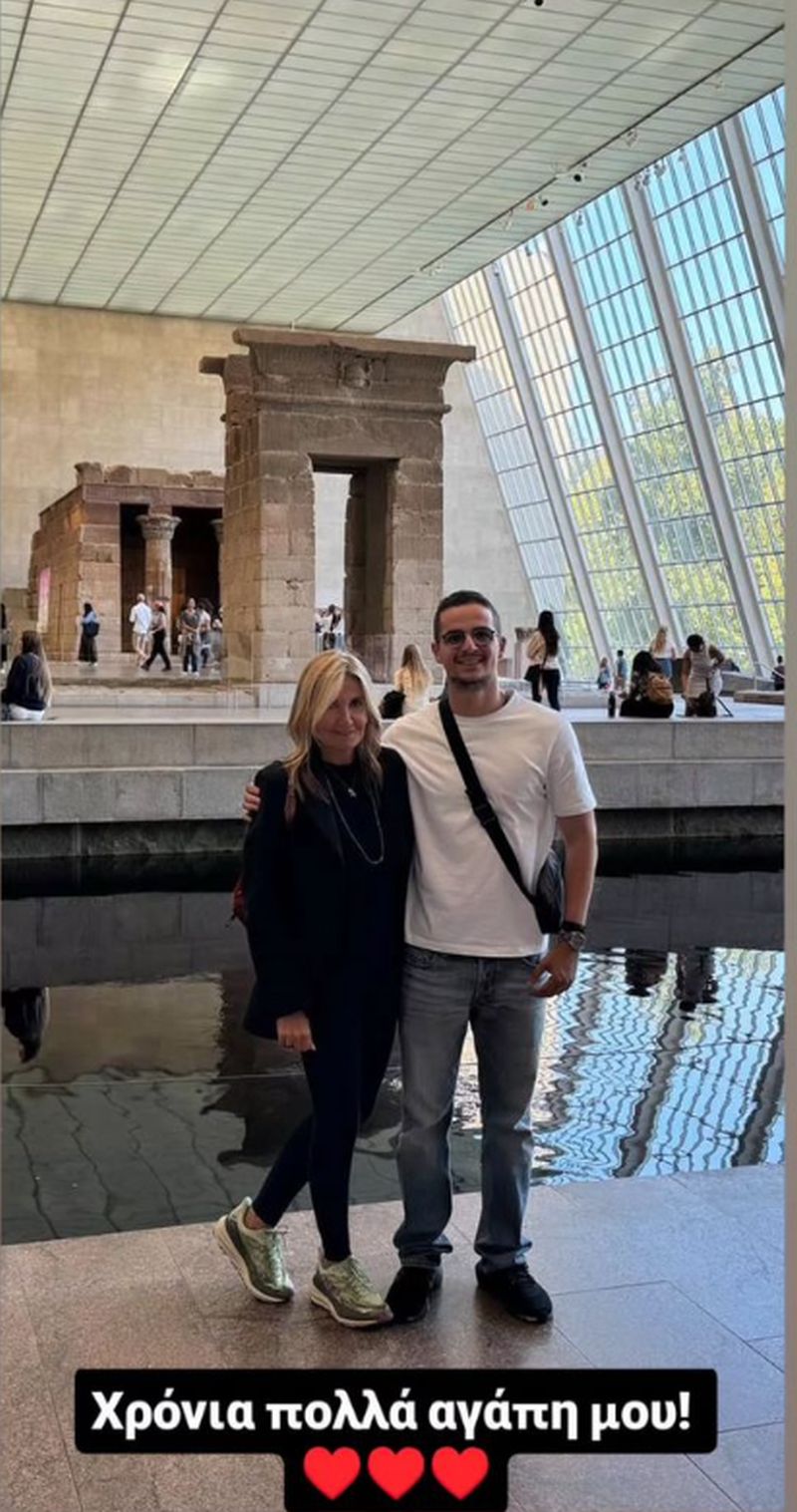 Η Μαρέβα Γκραμπόφσκι-Μητσοτάκη ανέβασε στον προσωπικό της λογαριασμό στο Instagram με αφορμή την ονομαστική εορτή του γιου της Κωνσταντίνου Μητσοτάκη μια κοινή τους φωτογραφία από το Μητροπολιτικό Μουσείο Τέχνης της Νέας Υόρκης για να του ευχηθεί χρόνια πολλά.