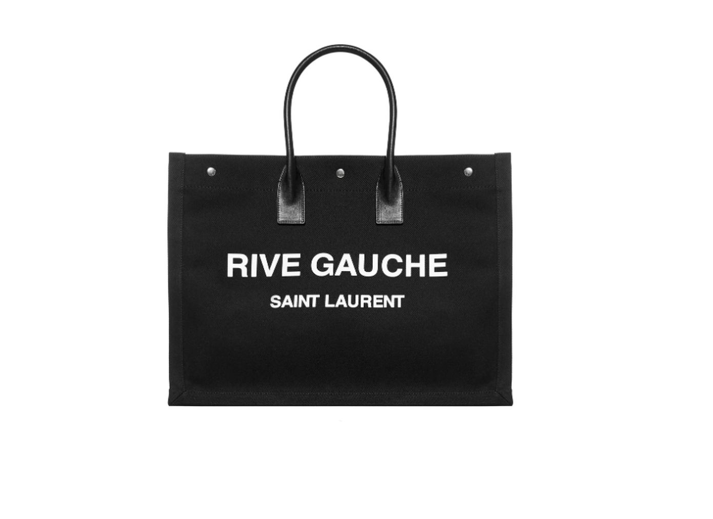 Η συγκεκριμένη τσάντα που φαίνεται στο βίντεο της Ιωάννας Τούνη είναι η Rive Gauche Tote από τον οίκο Saint Laurent (YSL) σε μαύρο χρώμα με λευκά γράμματα πιθανόν σε λινό ή βαμβακερό καμβά. Έχει πάνω τη χαρακτηριστική στάμπα “RIVE GAUCHE SAINT LAURENT”και μεταλλικά κουμπώματα.