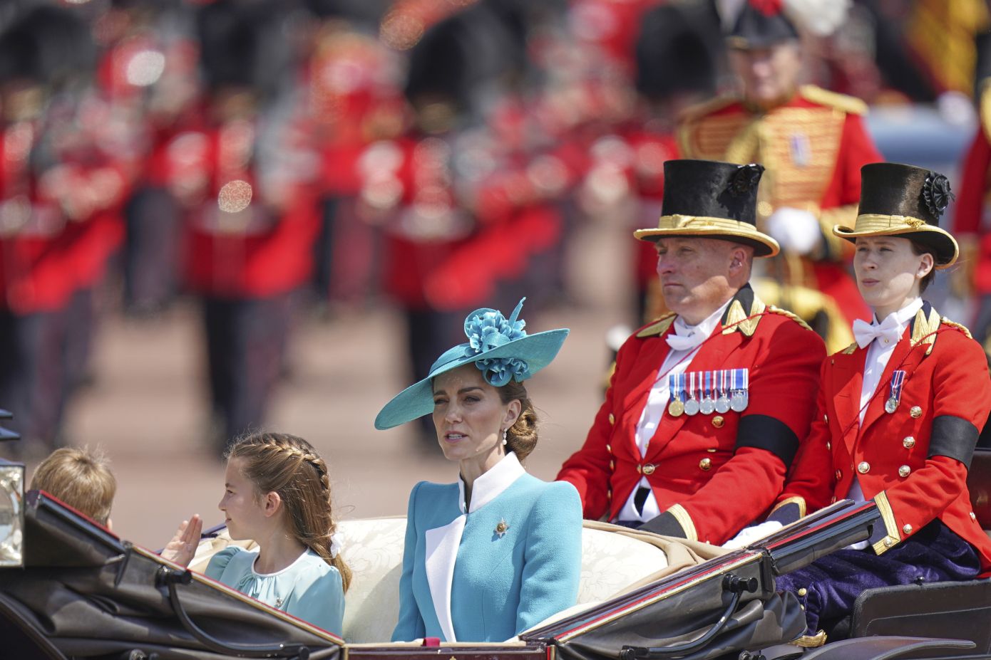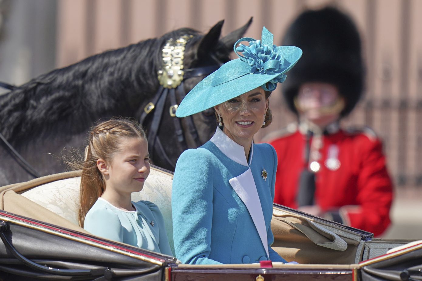 Η φετινή τελετή Trooping the Colour, η οποία γίνεται κάθε χρόνο για τον εορτασμό των επίσημων γενεθλίων του Βρετανού μονάρχη, ήταν αφιερωμένη στον βασιλιά Κάρολο Γ’, ο οποίος θα συμπληρώσει τα 77 του χρόνια τον Νοέμβριο. Για την περίσταση, η πριγκίπισσα Σάρλοτ επέλεξε ντύσιμο που ταίριαζε απόλυτα με εκείνο της μητέρας της, Κέιτ Μίντλετον, η οποία φόρεσε επίσης τιρκουάζ παλτό-φόρεμα, δημιουργία του οίκου Catherine Walker.