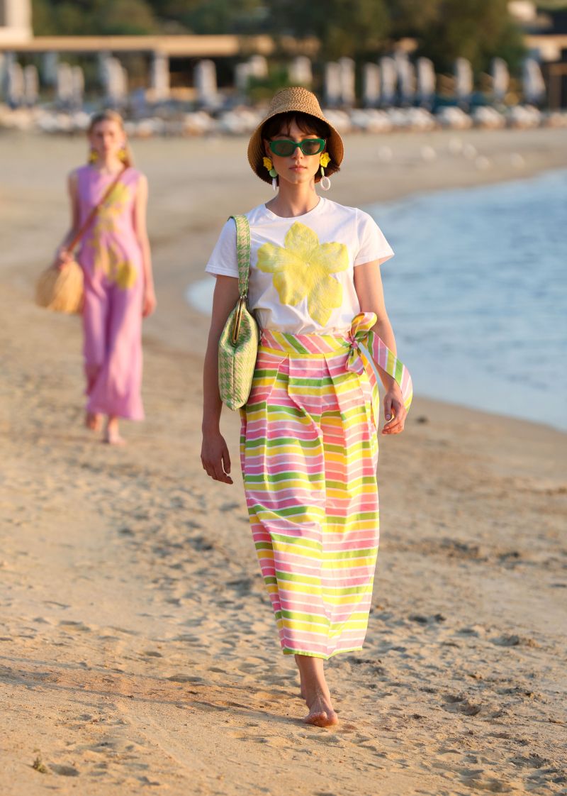 Η καλοκαιρινή συλλογή του Βασίλη Ζούλια χαρακτηρίζεται από διαχρονική θηλυκότητα, vintage αισθητική, ανάλαφρες υφές, floral μοτίβα, παστέλ αποχρώσεις, όγκους και διαφάνειες, ενώ πολύ έντονη ήταν όπως πάντα η παρουσία των αξεσουάρ: Καπέλα, τσάντες, γάντια, γυαλιά ηλίου και κοσμήματα ολοκλήρωναν τις εμφανίσεις των μοντέλων στην πασαρέλα φαντασμαγορικά. Στη συλλογή ενσωματώθηκαν τα μαγιό της Βαλεντίνας Βασιλάτου καθώς και οι χειροποίητες τσάντες από raffia της Γεωργίας Ξανθοπούλου που έδιναν συνέχεια στη στιλιστική εικόνα των catwalk looks. Tα κοσμήματα που φορούσαν τα μοντέλα ήταν όπως πάντα του Περικλή Κονδυλάτου.