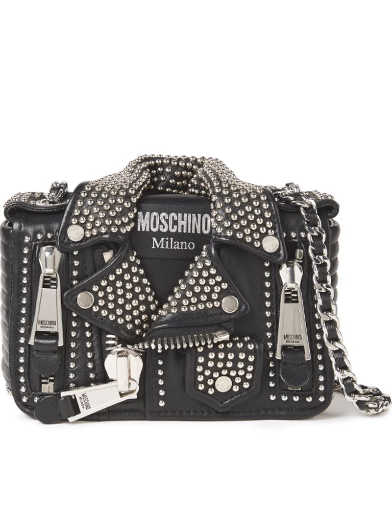 Moschino Biker Bag – Μοιάζει με δερμάτινο τζάκετ, ένα από τα πιο χαρακτηριστικά κομμάτια του brand.
