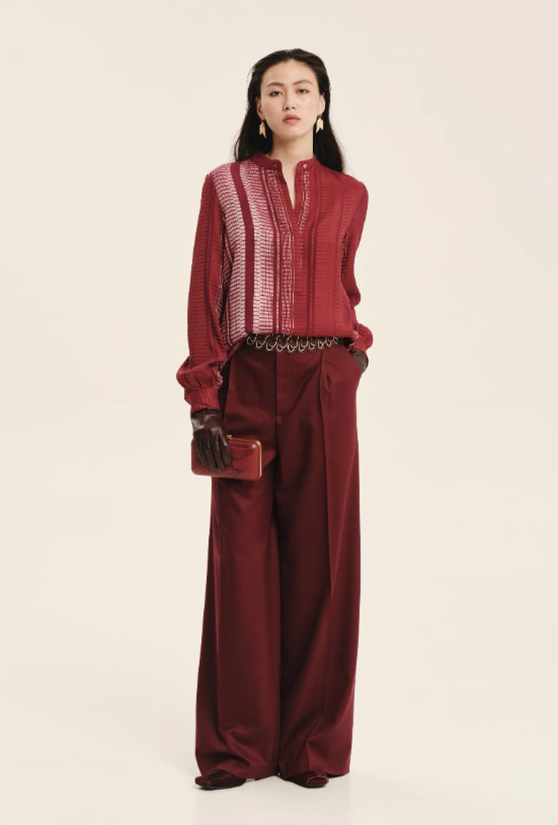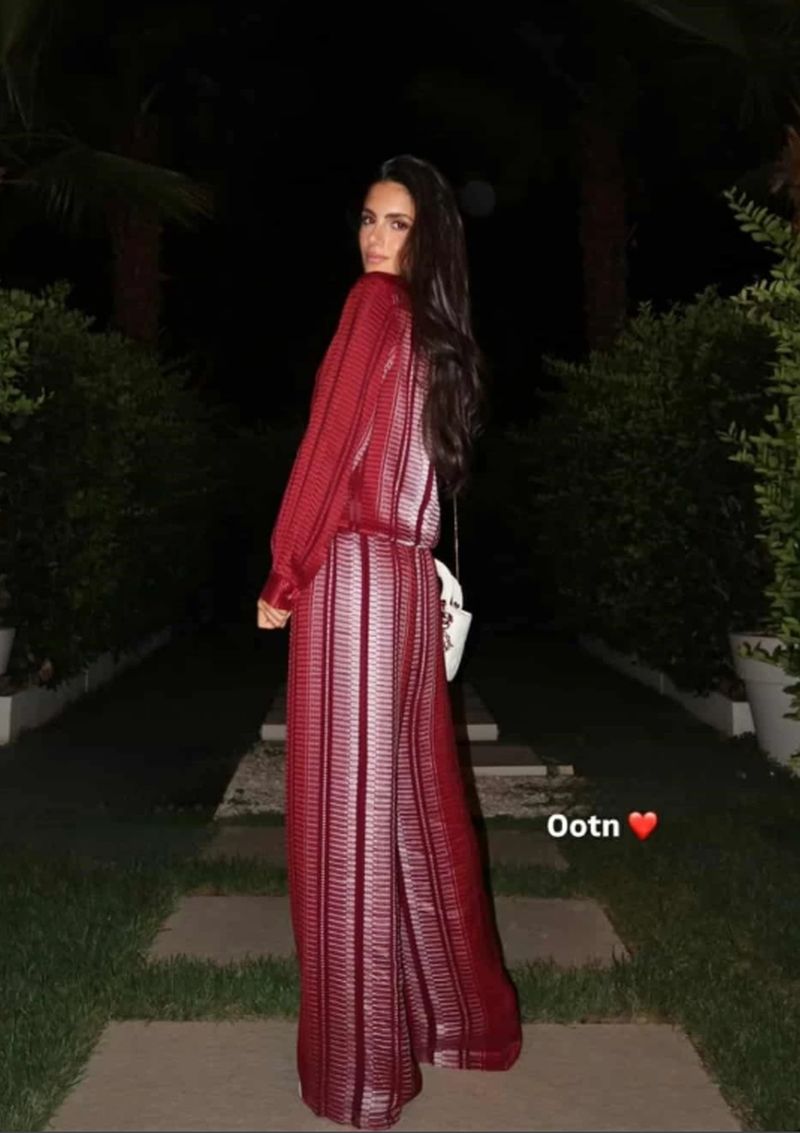 Το outfit της αποτελούνταν από ένα κομψό co-set, μια μακριά παντελόνα και μια μπλούζα σε αποχρώσεις του κόκκινου και του λευκού, δημιουργώντας μια ισορροπία ανάμεσα στο θηλυκό και το δυναμικό στοιχείο. Για την ολοκλήρωση του look, πρόσθεσε μια λευκή τσάντα Lady Dior, που έδωσε στο σύνολο μια νότα διαχρονικής πολυτέλειας.