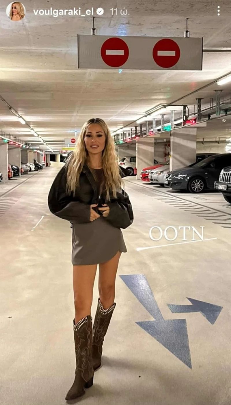 Επέλεξε μια μπεζ μίνι φούστα, την οποία συνδύασε με καφέ τοπ και ασορτί bomber jacket, δημιουργώντας ένα απόλυτα ισορροπημένο και κομψό φθινοπωρινό σύνολο. Το highlight, όμως, ήταν οι καφέ cowboy boots από τη Zara, που έδωσαν στο look μια πιο τολμηρή, fashion-forward πινελιά.