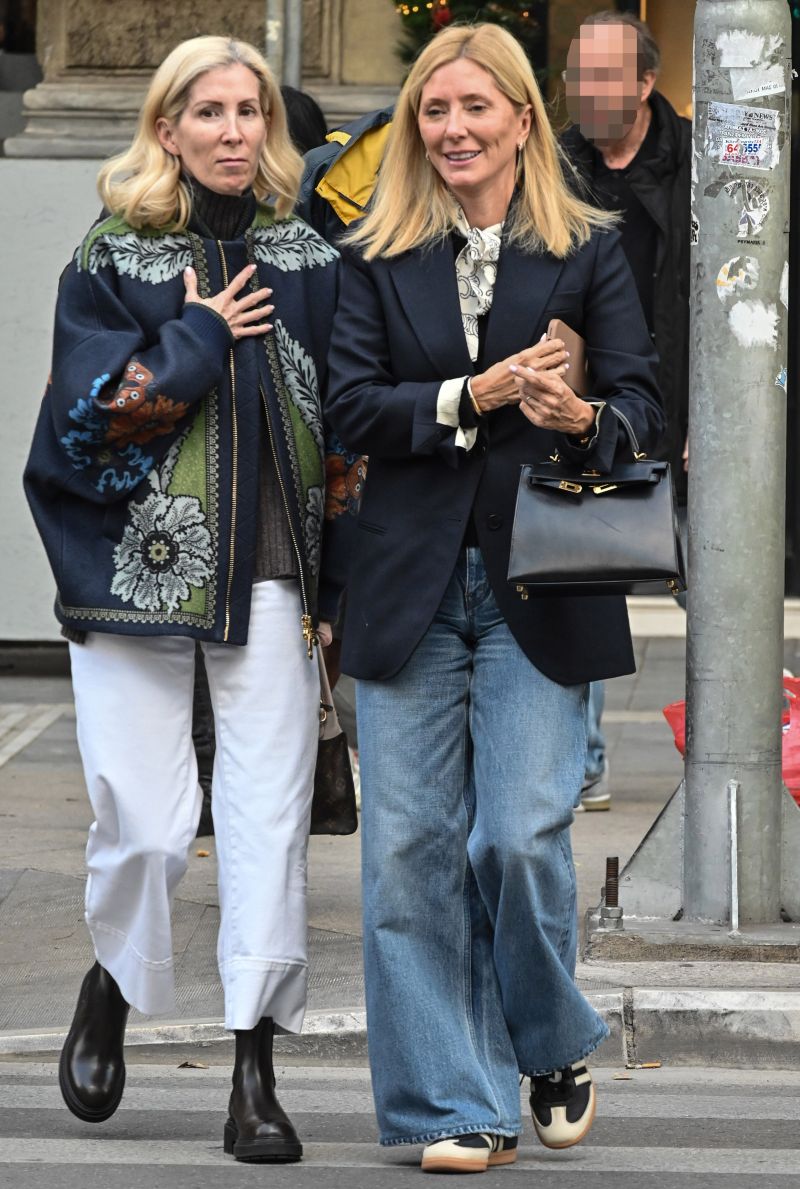 Σε πρόσφατη εμφάνισή της στο κέντρο της Αθήνας, η Marie Chantal επέλεξε ένα navy μπλε σακάκι σε χαλαρή γραμμή, ένα μαύρο πουλόβερ και ένα baggy τζιν παντελόνι, δίνοντας έναν σύγχρονο χαρακτήρα στο κλασικό της στιλ. Το σύνολο ολοκληρώθηκε με sneakers σε μαύρο και off white, ένα κρεμ μεταξωτό μαντήλι στον λαιμό και –φυσικά– μια εμβληματική τσάντα Hermès Kelly.