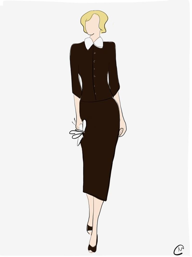 Το σύνολο σχεδιάστηκε από τον William Travilla, τον διάσημο σχεδιαστή κοστουμιών της 20th Century Fox, που είχε ντύσει τη Marilyn σε πολλές από τις πιο εμβληματικές της εμφανίσεις. Η επιλογή του καφέ χρώματος δεν ήταν τυχαία: θεωρούνταν τότε κομψό, «αστικό» και πρακτικό, μακριά από τη φαντασμαγορία ενός παραδοσιακού νυφικού.