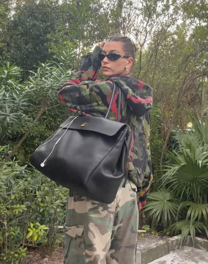 Λίγο αργότερα, η τσάντα πέρασε στα χέρια των απόλυτων fashion insiders. Η Hailey Bieber την κράτησε σε χαλαρές street style εμφανίσεις, συνδυάζοντάς τη με cargo παντελόνι, φούτερ και ακουστικά, δίνοντας έμφαση στον ανεπιτήδευτο χαρακτήρα της.