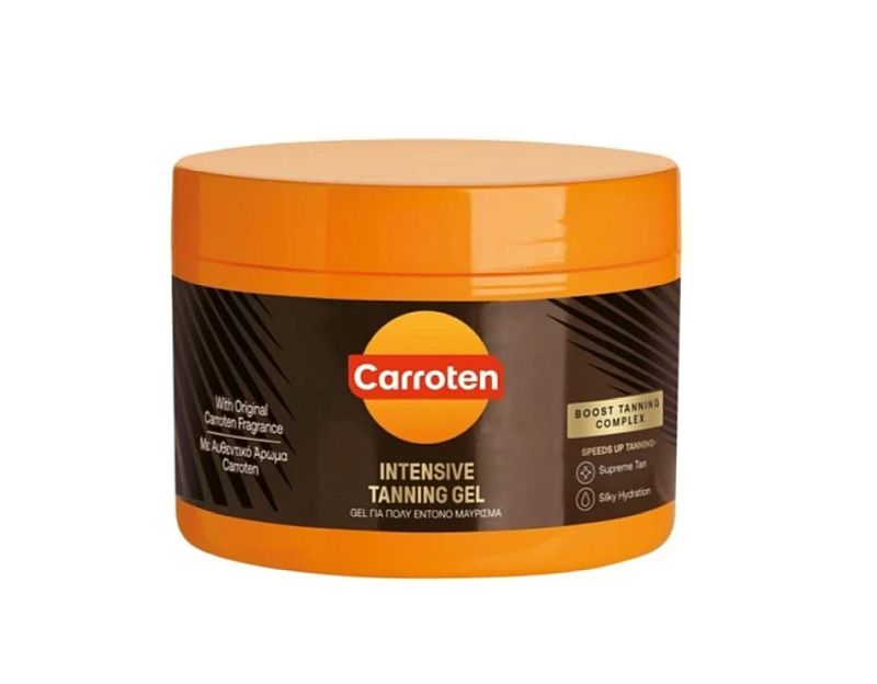 Πρόκειται για το Carroten gel, ένα προϊόν που αποτελεί σήμα κατατεθέν του τροπικού μαυρίσματος και στην Ελλάδα έχει καθιερωθεί εδώ και πάρα πολλά χρόνια ως το προϊόν που χαρίζει το σοκολατένιο χρώμα που τόσο ονειρεύεστε. Το Carroten Intensive Tanning Gel εξασφαλίζει άμεσο, βαθύ και έντονο μαύρισμα, ενώ παράλληλα βοηθά στην ενυδάτωση της επιδερμίδας, προστατεύοντάς τη από το ξεφλούδισμα, με τον συνδυασμό αντιοξειδωτικών βιταμινών Α & Ε.