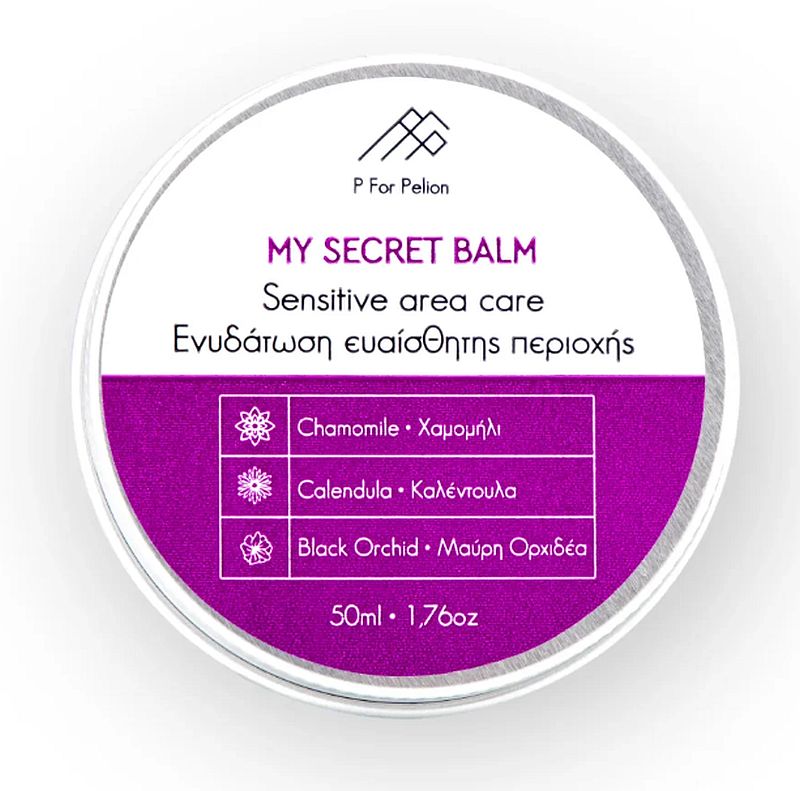 Το «My Secret Balm» είναι ένας ύμνος στη φύση και τη θηλυκότητα. Αυτό το απόλυτα φυσικό balm συνδυάζει τα εκχυλίσματα βοτάνων από τις πλαγιές του Πηλίου, με την ενυδατική δύναμη της βιταμίνης Ε. Η βελούδινη υφή του αγκαλιάζει την ευαίσθητη περιοχή σας, προλαμβάνοντας και καταπραΰνοντας τον ερεθισμό του δέρματός της. Ο μοναδικός συνδυασμός αυτών των φυσικών συστατικών προσφέρει υψηλή αντιφλεγμονώδη και ενυδατική δράση.