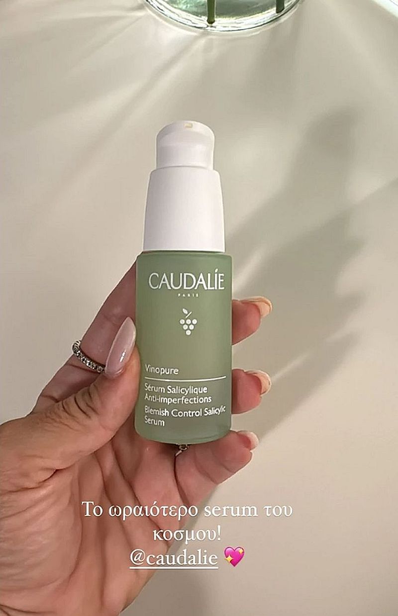 Πρόκειται για το Vinopure Blemish Control Salicylic Serum της γαλλικής εταιρείας Caudalie. Ο συγκεκριμένος ορός μειώνει τις ατέλειες, καθαρίζει βαθιά και συσφίγγει τους πόρους. Βελτιώνει την υφή και την ποιότητα της επιδερμίδας με τάση για ακμή και ξαναδίνει υγιή λάμψη, χωρίς γυαλάδα.