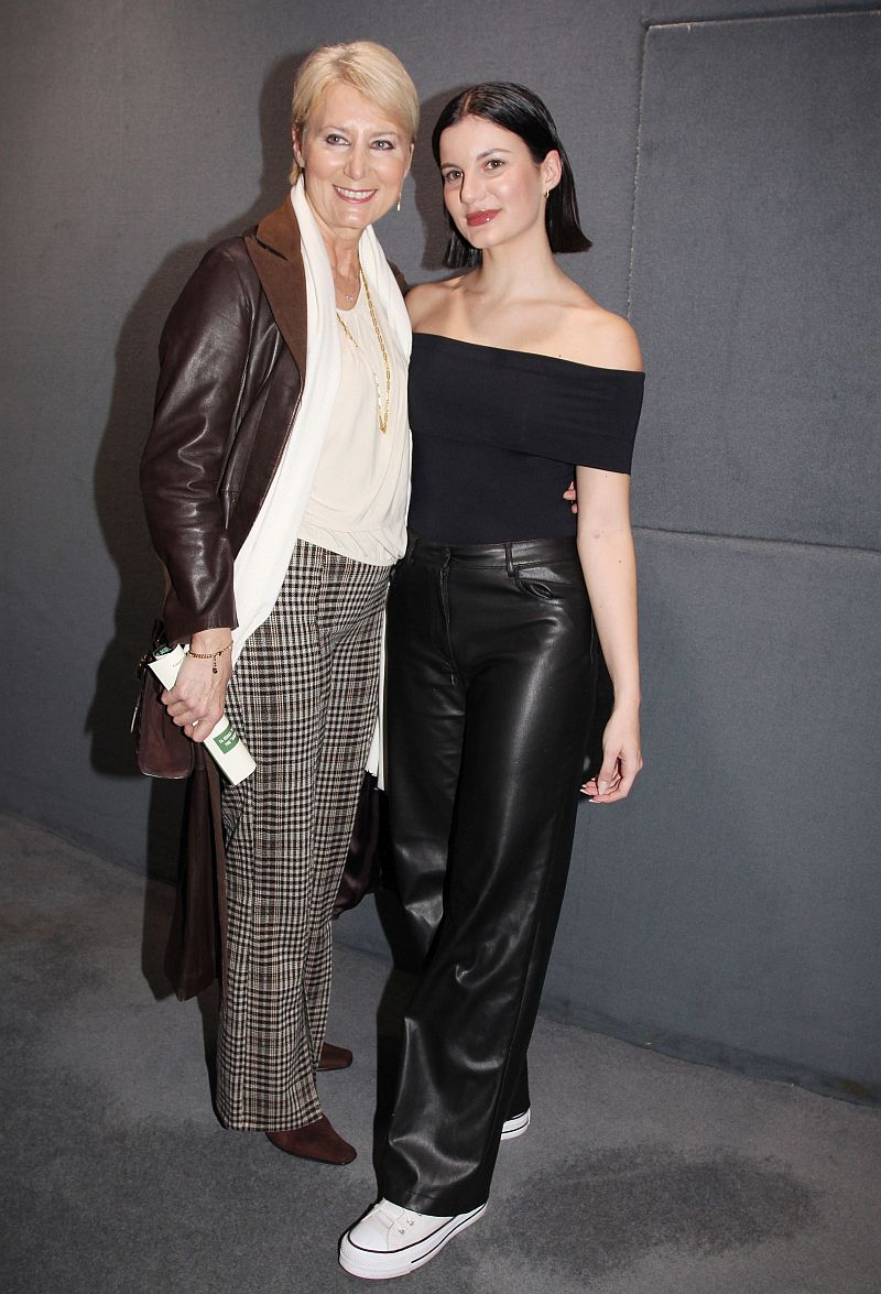 Η Αλίκη Καραμανλή επέλεξε ένα total black σύνολο με δερμάτινο παντελόνι, off the shoulder τοπ και λευκά sneakers, ολοκληρώνοντας την εμφάνισή της με ένα ζευγάρι διακριτικά σκουλαρίκια-κρίκους.