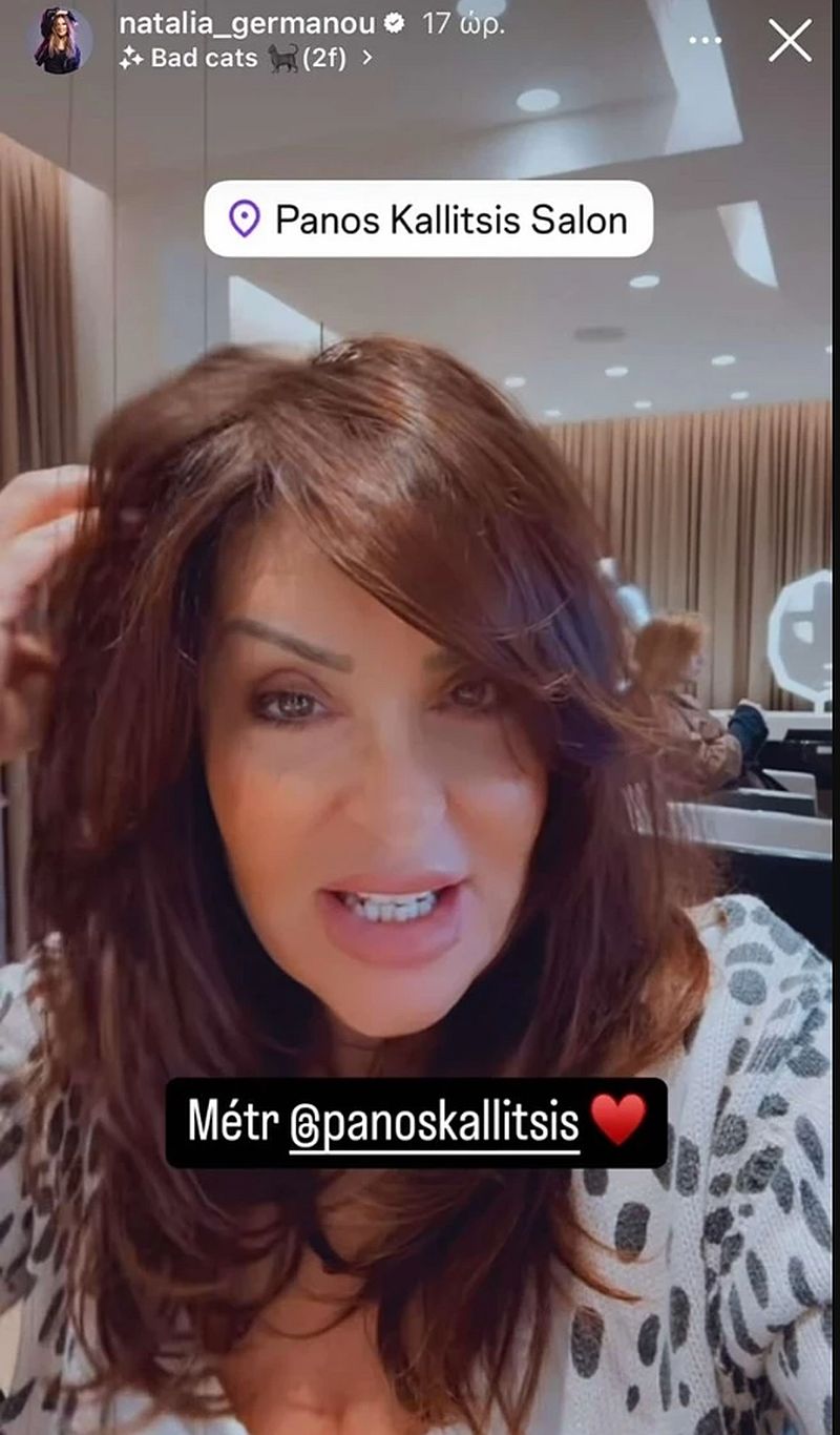 Η Ναταλία Γερμανού έδειξε το αποτέλεσμα μέσα από τον προσωπικό της λογαριασμό στο Instagram. Υιοθέτησε το πιο δημοφιλές κούρεμα της σεζόν, που έχουν καθιερώσει οι Κλέλια Ανδριολάτου και Βάσια Κωσταρά και το οποίο θέλει τα μαλλιά να έχουν layers και curtain bangs που πέφτουν ανάλαφρα στο μέτωπο, καμουφλάροντας τα σημάδια γήρανσης στο πρόσωπο, όπως οι ρυτίδες στο πόδι της χήνας. Η Ναταλία Γερμανού είναι ενθουσιασμένη με το νέο της hairlook και σχολίασε σχετικά στον προσωπικό της λογαριασμό στο Instagram: «Έρχεσαι στην κανονική σου ηλικία και φεύγεις μείον δέκα χρόνια».