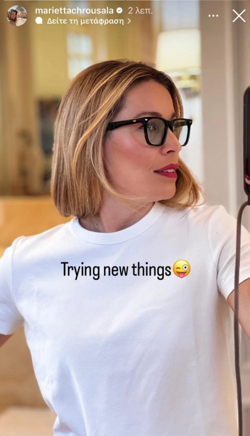 Αυτός ακριβώς είναι και ο λόγος που μας έκανε τόσο μεγάλη εντύπωση η αλλαγή στο hairstyle της το οποίο είδαμε σε ένα story που ανέβασε στον προσωπικό της λογαριασμό στο Instagram. Η Μαριέττα Χρουσαλά, λοιπόν, πόζαρε σε μία selfie με ένα faux bob, το οποίο δεν είναι αποτέλεσμα κουρέματος αλλά χτενίσματος, κάτι που γίνεται ξεκάθαρο από το τελείωμα των μαλλιών της που είναι γυρισμένο προς τα μέσα, τον χαρακτηριστικό τρόπο με τον οποίο μαζεύονται τα μαλλιά στο ψεύτικο καρέ.