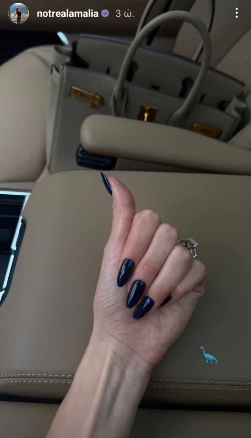 H Aμαλία Κωστοπούλου ανέβασε ένα story στον προσωπικό της λογαριασμό στο Instagram και έδειξε το μανικιούρ της το οποίο ήταν αναπάντεχο για την καλοκαιρινή περίοδο που είναι προ των πυλών. Συγκεκριμένα, η κόρη του Πέτρου Κωστόπουλου και της Τζένης Μπαλατσινού επέλεξε για τα μακριά, almond νύχια της μια σκούρα μπλε απόχρωση η οποία τυπικά ανήκει στις χειμερινές αποχρώσεις.