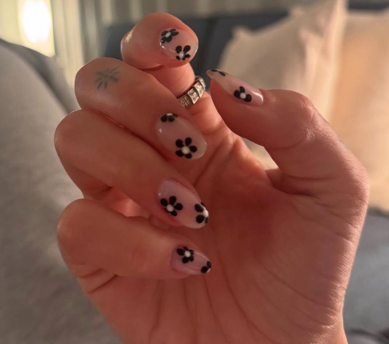 Η pop star αυτή τη στιγμή βρίσκεται στην περιοδεία Radical Optimism σε διάφορες Ευρωπαϊκές πόλεις και το συγκεκριμένο black and white floral mani την συνοδεύει στη σκηνή του συγκεκριμένου tour της. Η Michelle Humphrey ζωγράφισε άνθη με λευκό κέντρο και μαύρα πέταλα πάνω στη nude βάση του νυχιού της Dua Lipa διατηρώντας τα νύχια σε μεσαίο μήκος και το σχήμα τους αμυγδαλωτό, κάτι που τα κάνει χαριτωμένα και χρηστικά. Φυσικά μπορείτε να χρησιμοποιήσετε αυτή την εκδοχή ως inspo και να ζητήσετε από τη δική σας nail artist τα λουλούδια στα χρώματα που εσείς επιθυμείτε. Λάβετε υπόψιν σας ωστόσο πως αυτά τα μανικιούρ βγαίνουν καλύτερα με ημιμόνιμο μανικιούρ ή σε τεχνητά νύχια, καθώς τα σχέδια ζωγραφίζονται καλύτερα και διατηρούνται για περισσότερο χρονικό διάστημα.