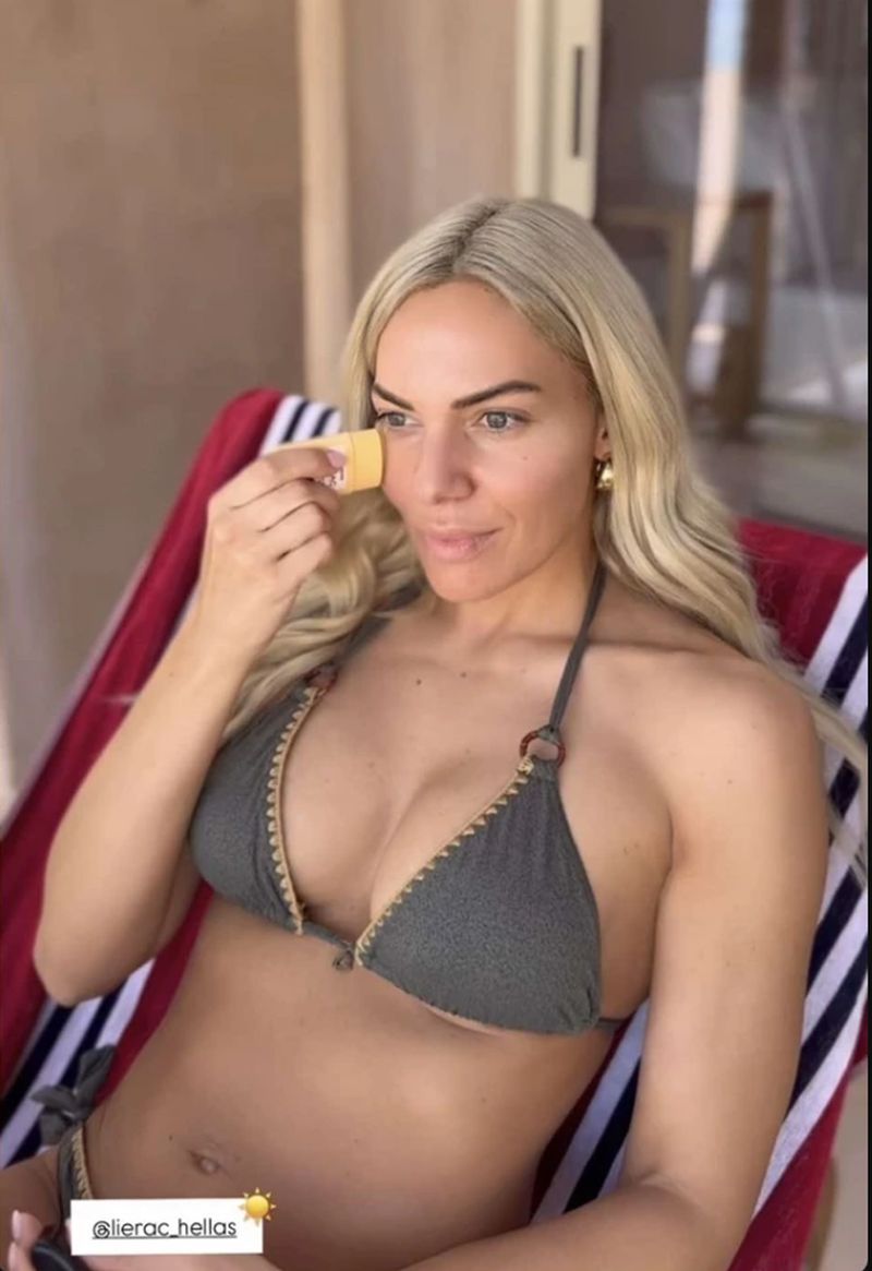 Η παρουσιάστρια εμπιστεύεται το Sunissime Protective Stick SPF50+ της Lierac, ένα πρακτικό και ισχυρό αντηλιακό σε μορφή stick που προσφέρει πολύ υψηλή προστασία τόσο στο πρόσωπο όσο και σε ευαίσθητες περιοχές όπως σημάδια, τατουάζ, ουλές, σπίλοι και ώμοι.