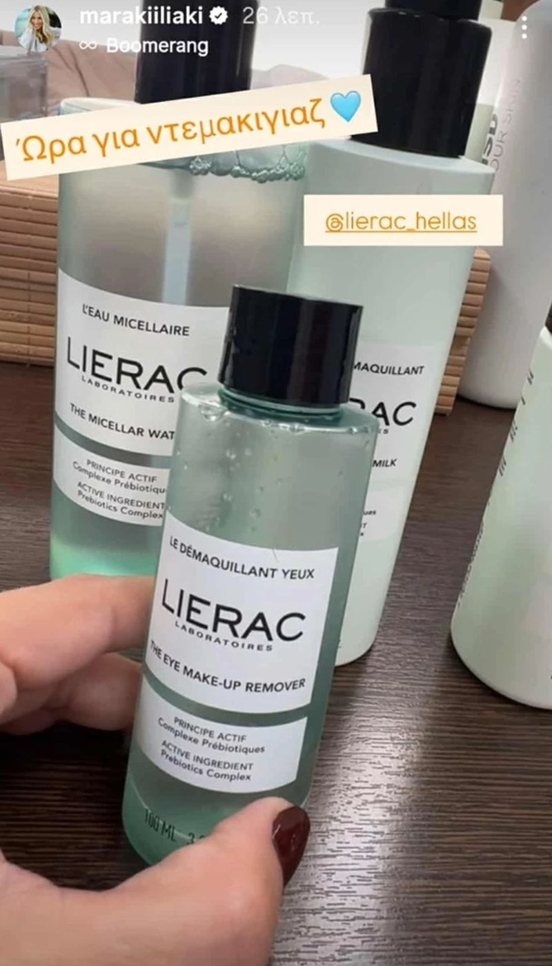 Η Μαρία Ηλιάκη, που λόγω δουλειάς φοράει έντονο μακιγιάζ σχεδόν καθημερινά, φαίνεται πως το εμπιστεύεται γιατί της προσφέρει έναν γρήγορο αλλά και ολοκληρωμένο καθαρισμό, χωρίς να ταλαιπωρεί τα μάτια και τις βλεφαρίδες της.