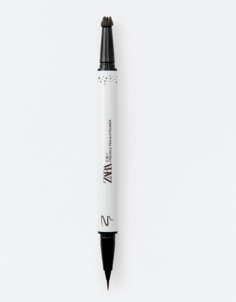 Η Zara Beauty κυκλοφόρησε ένα καινοτόμο προϊόν 2 σε 1 που λειτουργεί ως υγρό μολύβι για φακίδες και eyeliner, και έχει ήδη κάνει τον γύρο του διαδικτύου. Το ιδιαίτερο design του διαθέτει πέντε μικρές γωνίες σε διαφορετικό ύψος και πάχος, οι οποίες λειτουργούν σαν “σφραγίδες” που αποτυπώνουν φακίδες σε διάφορα μεγέθη και αποχρώσεις, προσφέροντας ένα απόλυτα φυσικό αποτέλεσμα.