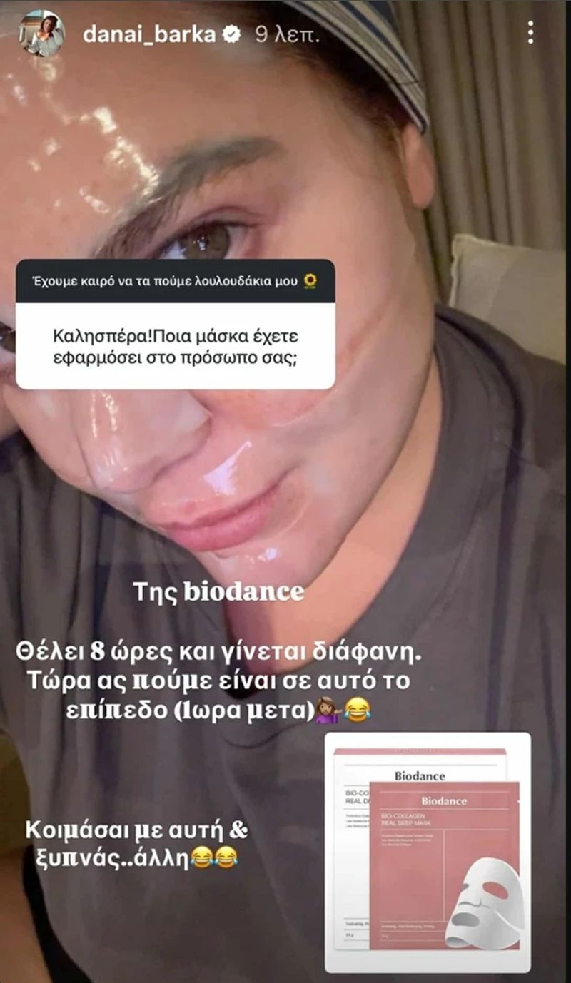 Η επιλογή της Δανάης Μπάρκα είναι η Bio Collagen–Real Deep Mask της Biodance, μια μάσκα που έχει ξεχωρίσει για την πολύ έντονη ενυδάτωση και τη δράση σύσφιξης που προσφέρει ήδη από την πρώτη εφαρμογή. Είναι από τα προϊόντα που θα βρείτε εύκολα σε φαρμακείο, αλλά η απόδοσή της συγκρίνεται με μάσκες πολύ πιο ακριβών brands.