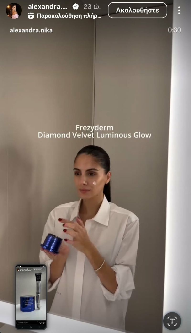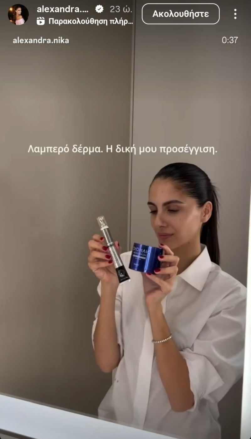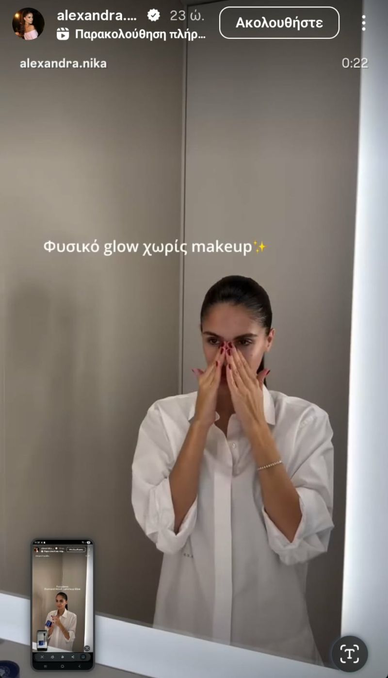 Ο συνδυασμός των δύο αυτών προϊόντων εξηγεί απόλυτα γιατί η επιδερμίδα της Αλεξάνδρας Νίκα δείχνει τόσο λαμπερή και φρέσκια, ακόμη και χωρίς μακιγιάζ. Τελικά, το πιο εντυπωσιακό glow δεν έρχεται από το highlighter, αλλά από τη σωστή φροντίδα της επιδερμίδας.