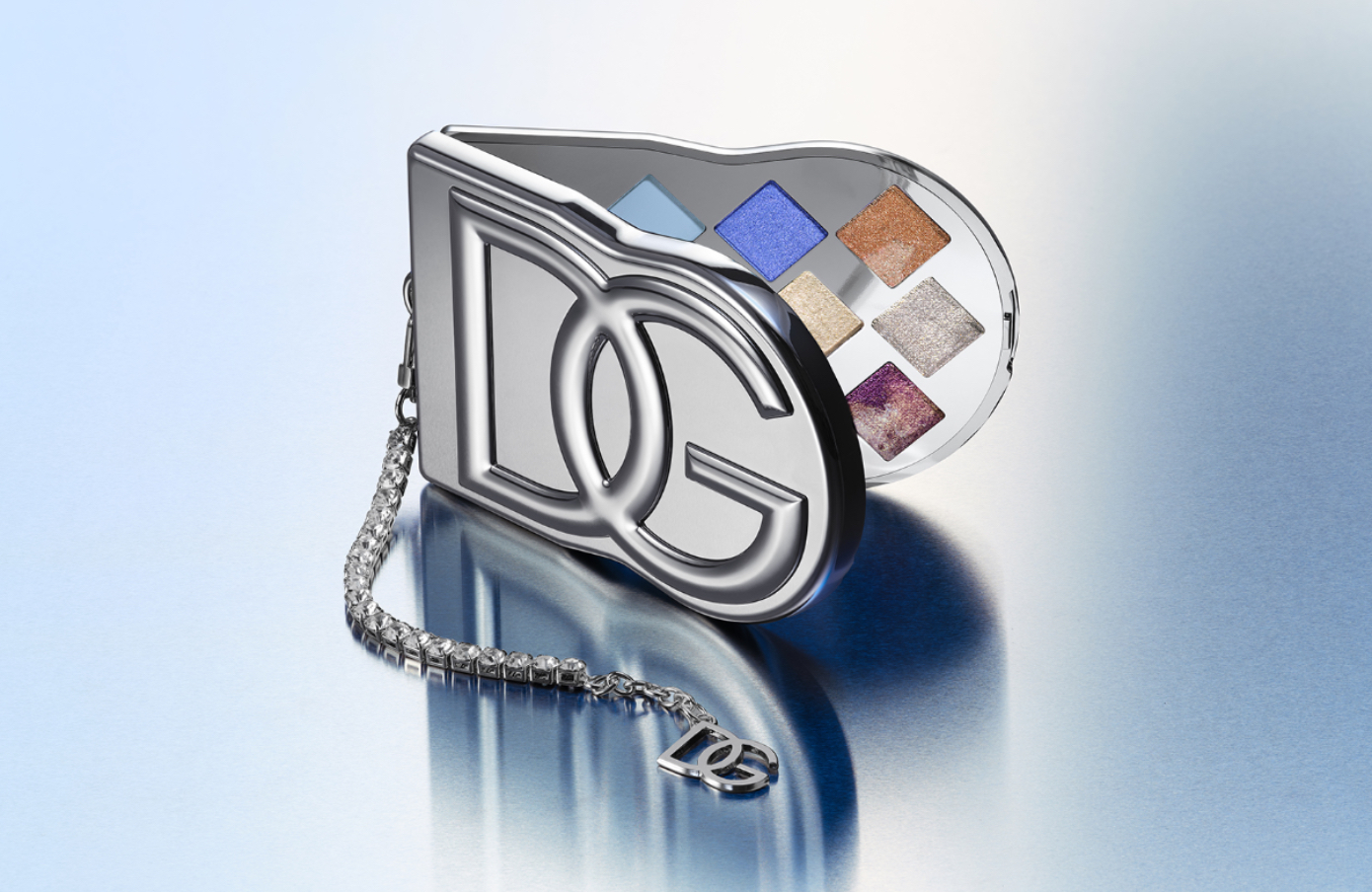 Και μετά έρχεται η συσκευασία, που σχεδόν ακυρώνει την έννοια του “makeup product”. Μεταλλική, ασημί, με αποσπώμενη αλυσίδα με στρας, θυμίζει περισσότερο micro bag παρά παλέτα.