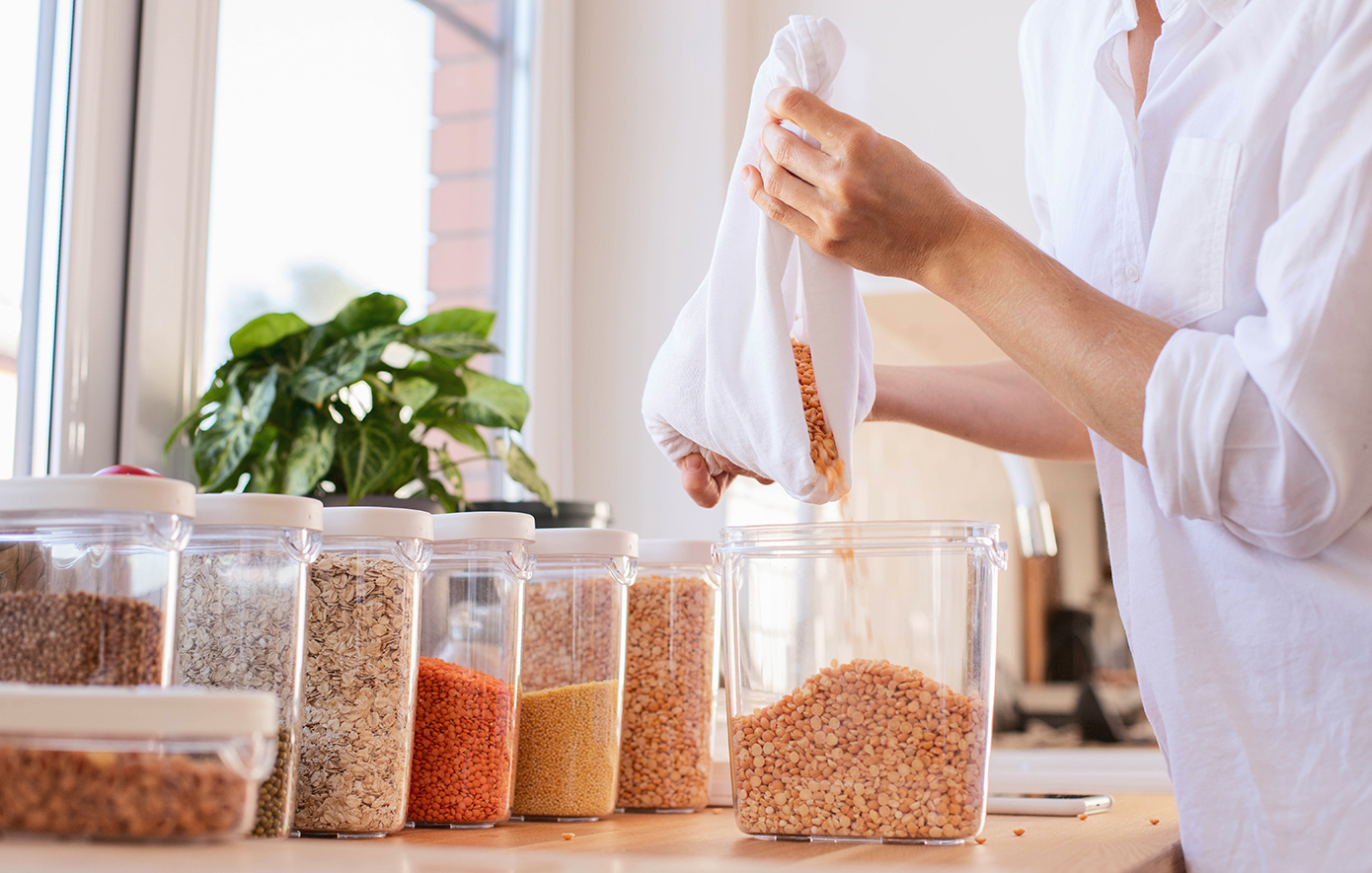 Οι πιθανότητες είναι ότι έχετε έναν τόνο πλαστικών δοχείων αποθήκευσης τροφίμων, αλλά δεν έχουν όλα τα ίδια καπάκια. Η Cohen συνιστά να τα βγάλετε όλα και να τα ταιριάξετε σωστά. Βάλτε στην άκρη όποιο έχει χαμένο ταίρι και αποθηκεύστε τα υπόλοιπα στοιβάζοντάς τα το ένα μέσα στο άλλο. «Θα είναι πιο εύκολο να διατηρήσετε τον χώρο σας οργανωμένο όταν αφαιρέσετε τα περιττά δοχεία», λέει.