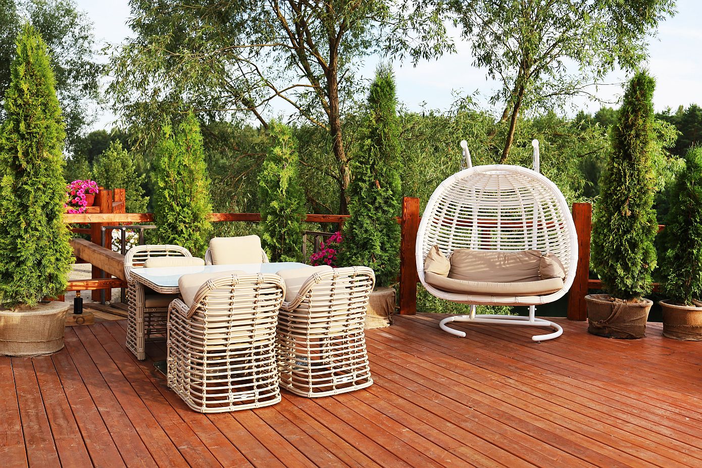 Επιλέξτε υλικά που είναι ανθεκτικά στις καιρικές συνθήκες. Το αλουμίνιο, το πλαστικό υψηλής ποιότητας, το ατσάλι με προστατευτική επικάλυψη, και το ξύλο από τικ (teak) είναι καλές επιλογές.